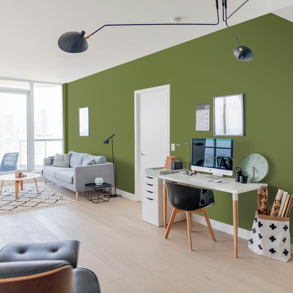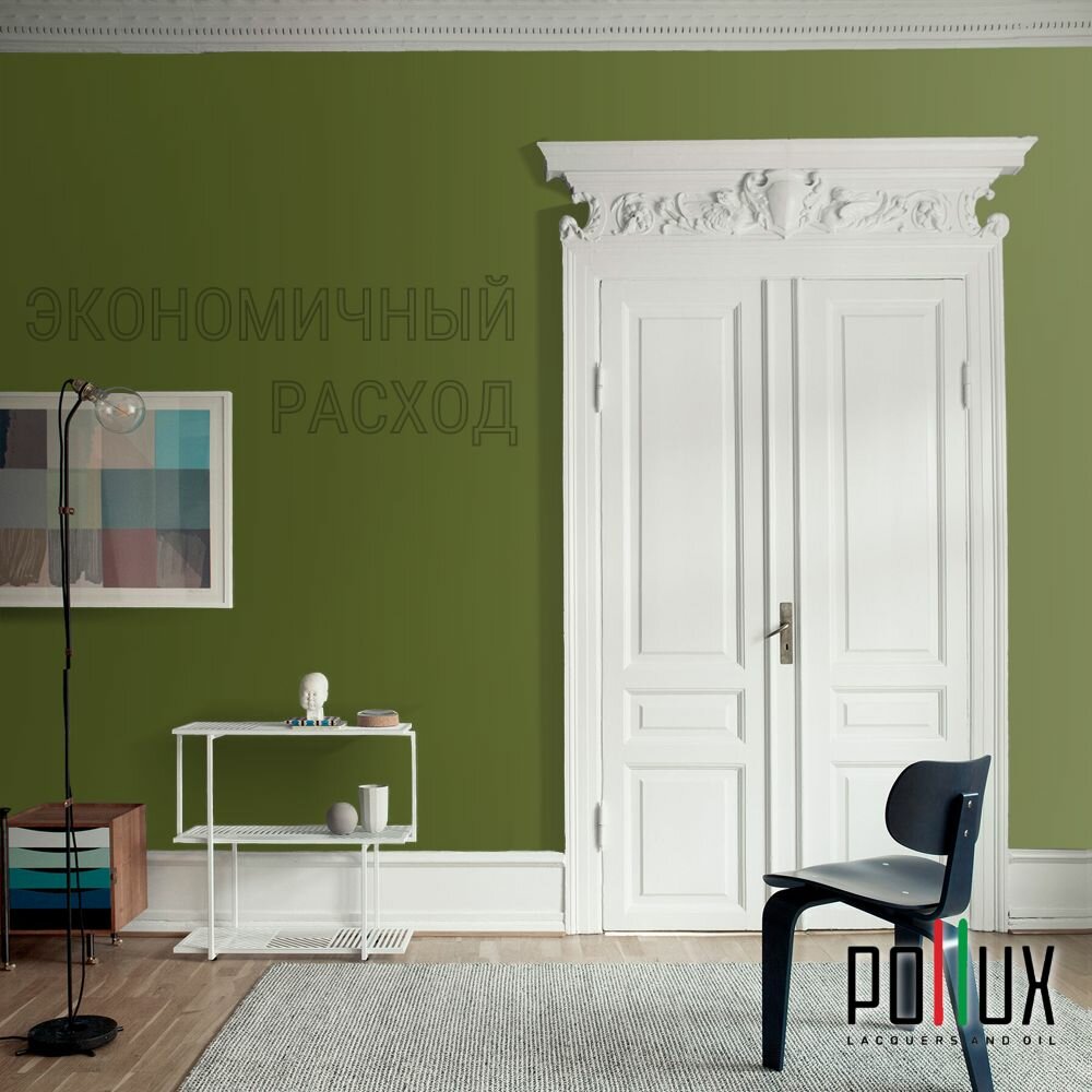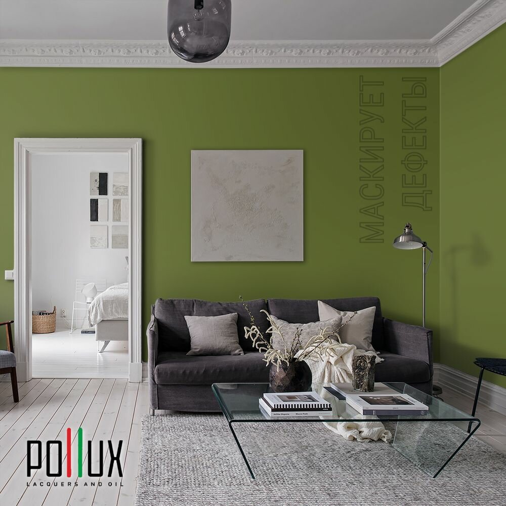 Краска моющаяся интерьерная для стен и потолков, Pollux INTERIOR без запаха, быстросохнущая, акриловая, матовое покрытие, цвет NCS S 8005-G50Y, 1л.