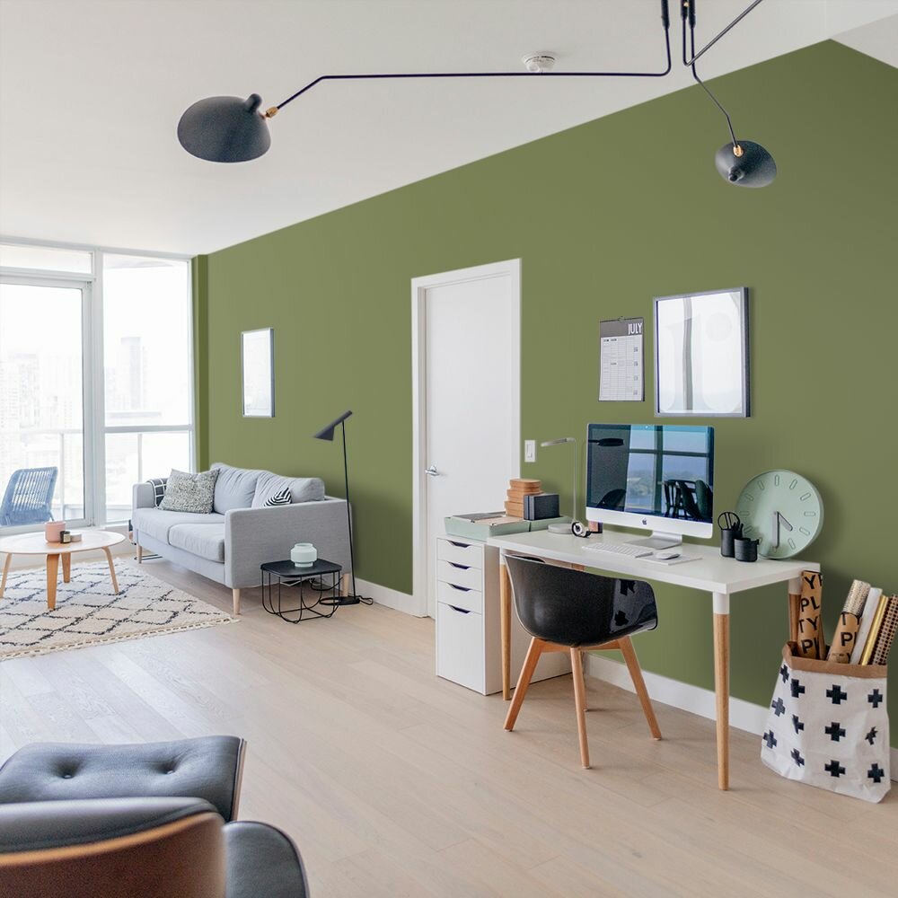 Краска моющаяся интерьерная для стен и потолков, Pollux INTERIOR без запаха, быстросохнущая, акриловая, матовое покрытие, цвет NCS S 6010-G50Y, 1л.