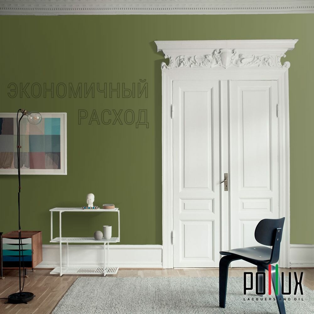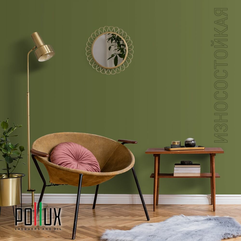 Краска моющаяся интерьерная для стен и потолков, Pollux INTERIOR без запаха, быстросохнущая, акриловая, матовое покрытие, цвет NCS S 6005-G50Y, 1л.