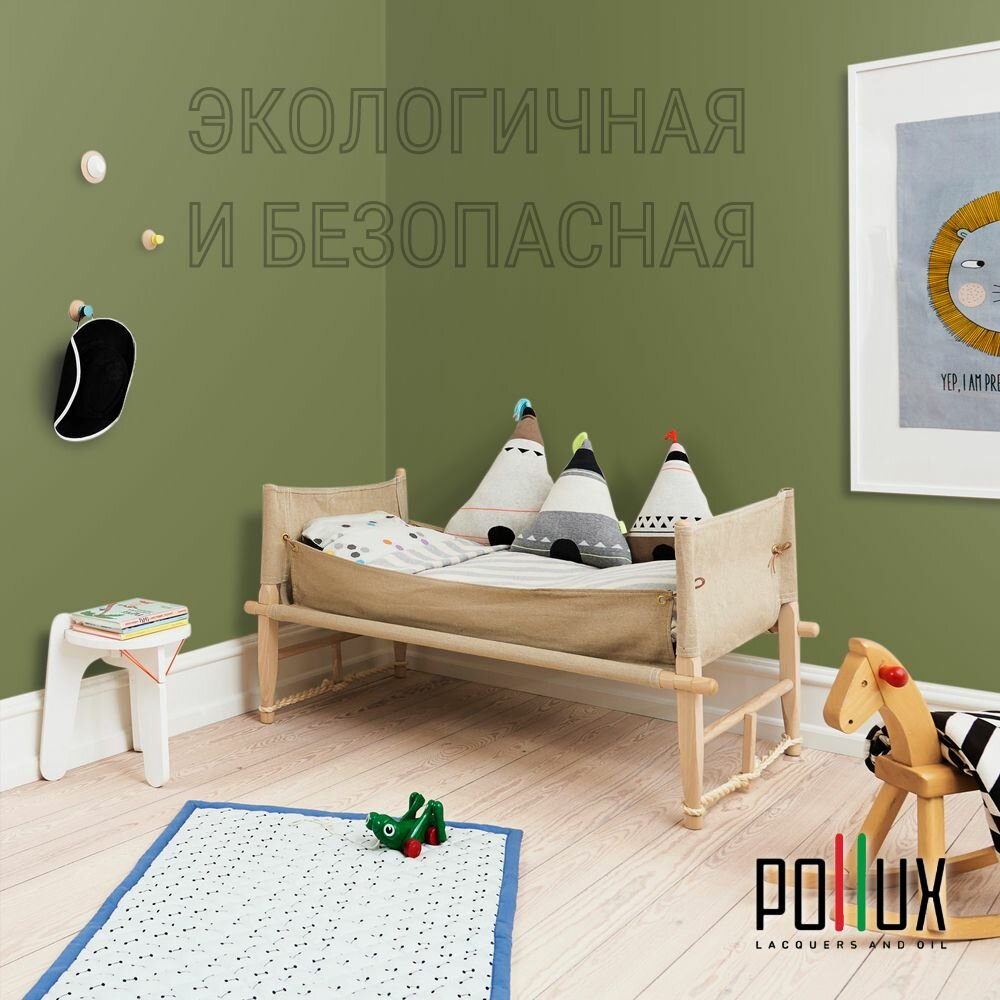 Краска моющаяся интерьерная для стен и потолков, Pollux INTERIOR без запаха, быстросохнущая, акриловая, матовое покрытие, цвет NCS S 4050-G50Y, 1л.