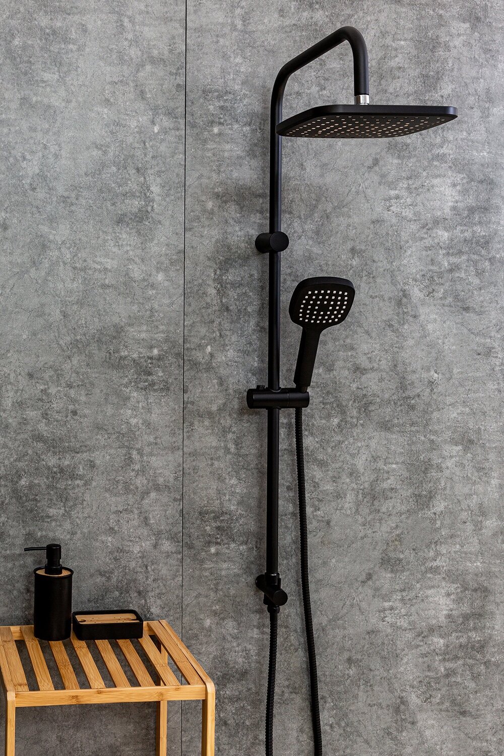 | Дополнительная информация | покрытие черный матовый; высота стойки для душа: 970 мм; диаметр душевой лейки: 120 мм; длина верхнего душа: 265 мм; ширина верхнего душа: 265 мм |