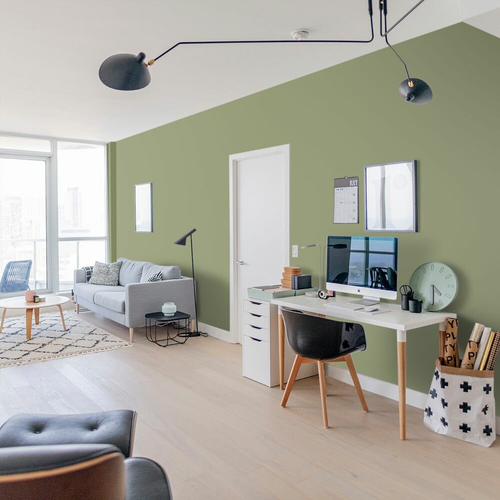 Краска моющаяся интерьерная для стен и потолков, Pollux INTERIOR без запаха, быстросохнущая, акриловая, матовое покрытие, цвет NCS S 6010-G50Y, 1л.