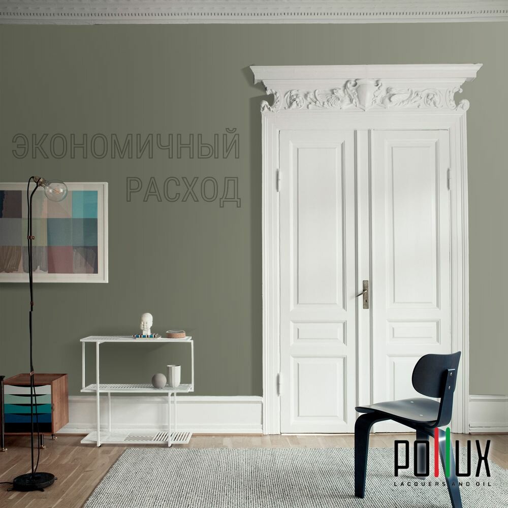 Краска моющаяся интерьерная для стен и потолков, Pollux INTERIOR без запаха, быстросохнущая, акриловая, матовое покрытие, цвет NCS S 7005-G50Y, 1л.