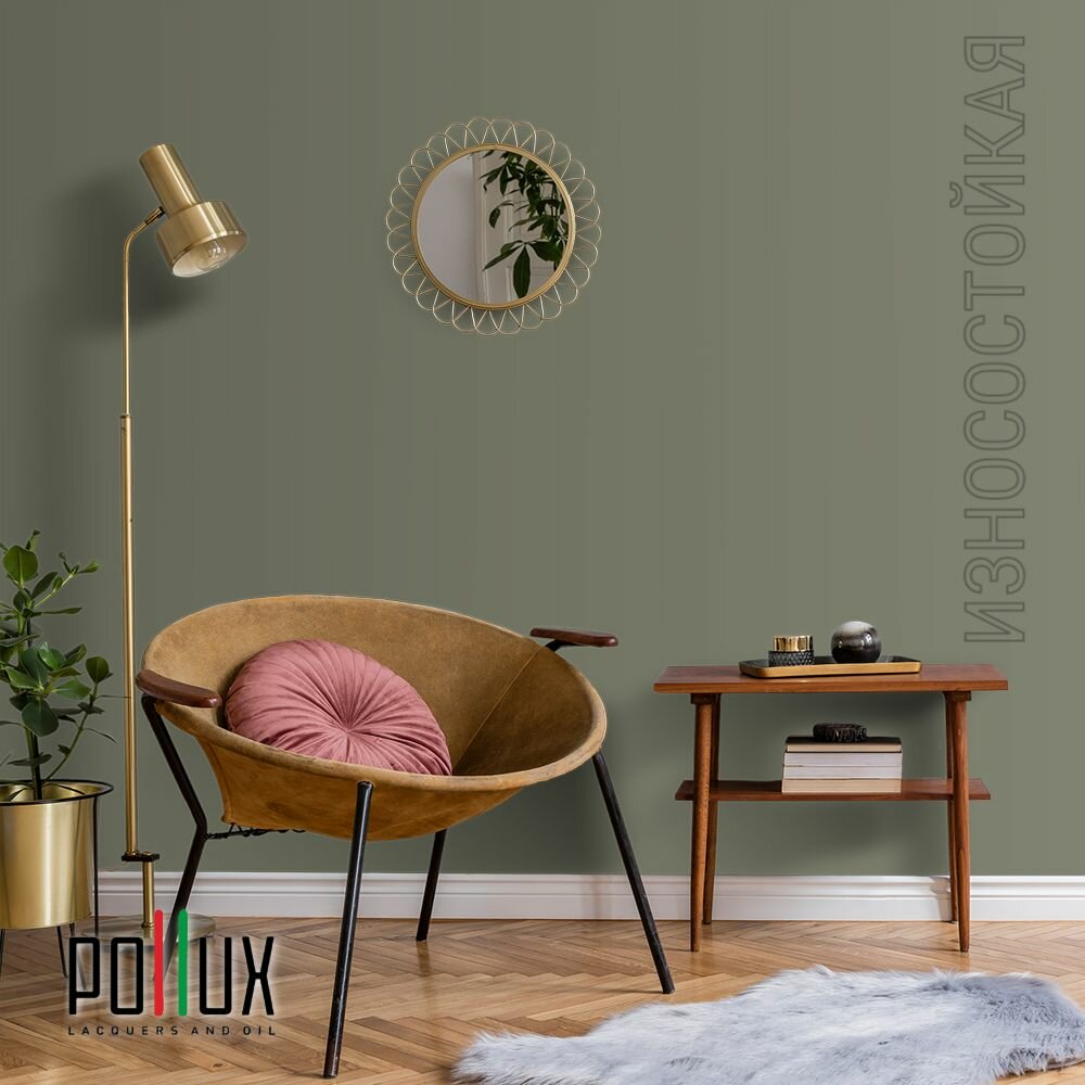 Краска моющаяся интерьерная для стен и потолков, Pollux INTERIOR без запаха, быстросохнущая, акриловая, матовое покрытие, цвет NCS S 8010-G50Y, 1л.