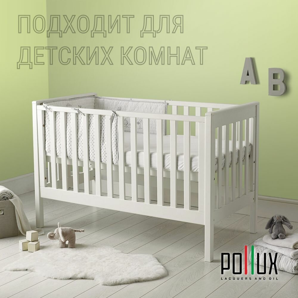 Краска моющаяся интерьерная для стен и потолков, Pollux INTERIOR без запаха, быстросохнущая, акриловая, матовое покрытие, цвет NCS S 4030-G50Y, 1л.