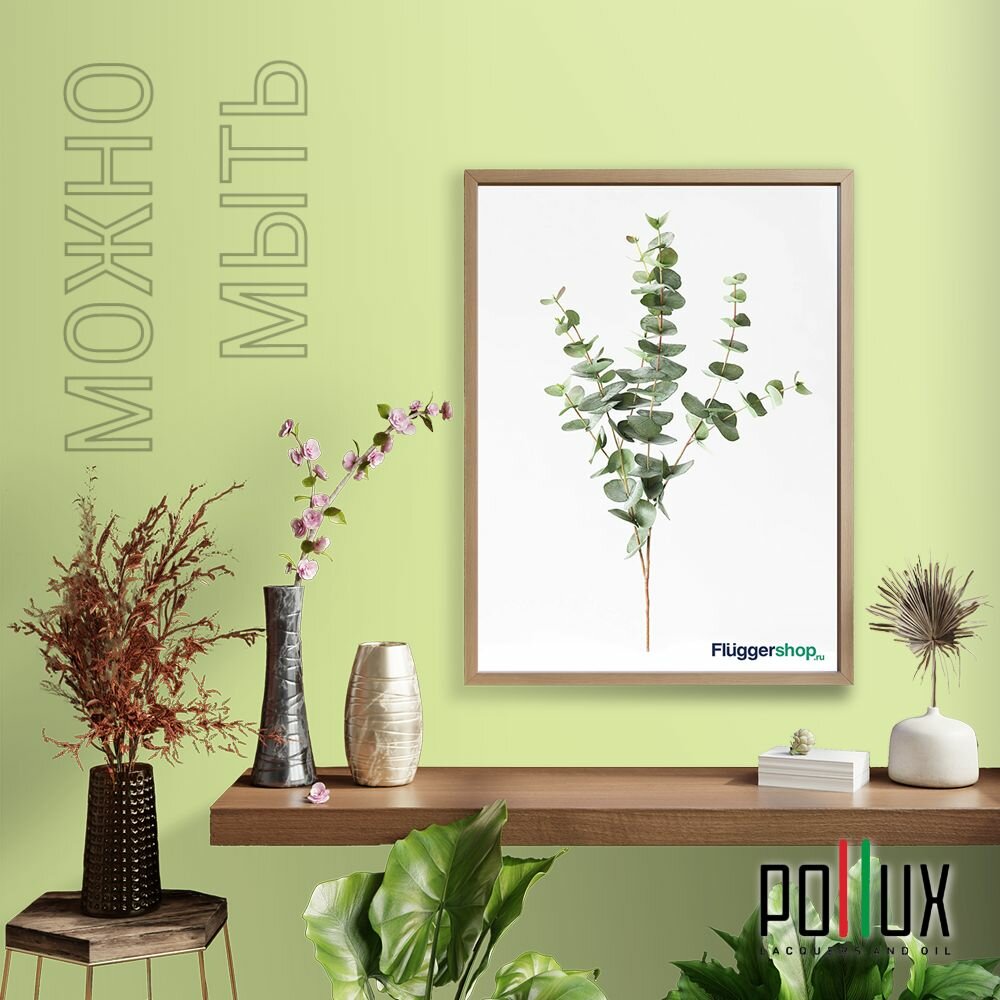 Краска моющаяся интерьерная для стен и потолков, Pollux INTERIOR без запаха, быстросохнущая, акриловая, матовое покрытие, цвет NCS S 5540-G50Y, 1л.
