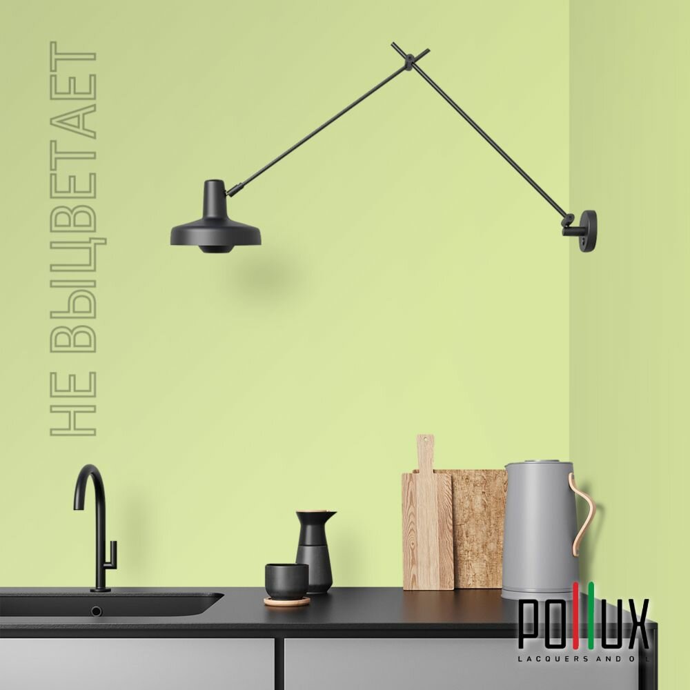 Краска моющаяся интерьерная для стен и потолков, Pollux INTERIOR без запаха, быстросохнущая, акриловая, матовое покрытие, цвет NCS S 5020-G50Y, 1л.