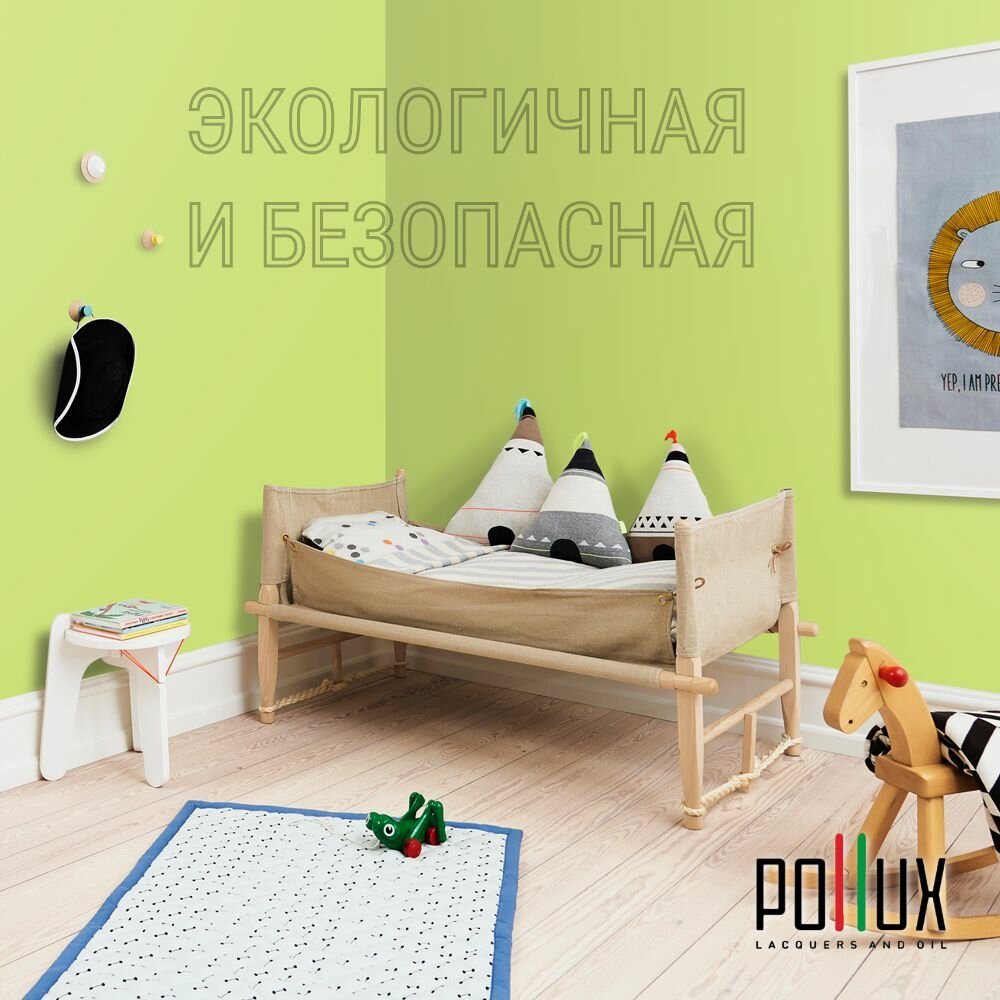 Краска моющаяся интерьерная для стен и потолков, Pollux INTERIOR без запаха, быстросохнущая, акриловая, матовое покрытие, цвет NCS S 6010-G50Y, 1л.