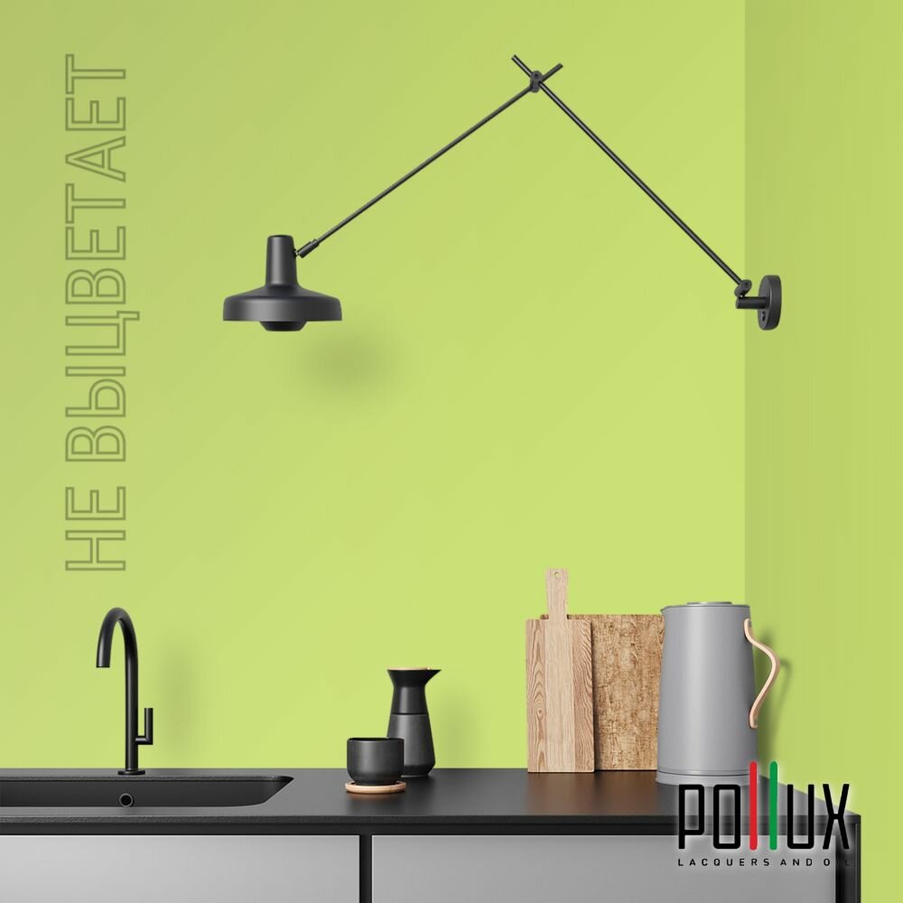 Краска моющаяся интерьерная для стен и потолков, Pollux INTERIOR без запаха, быстросохнущая, акриловая, матовое покрытие, цвет NCS S 6530-G50Y, 1л.