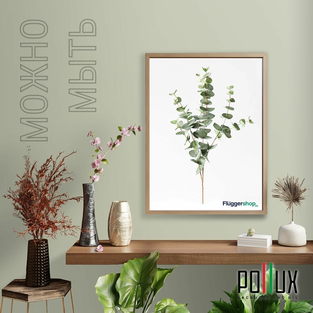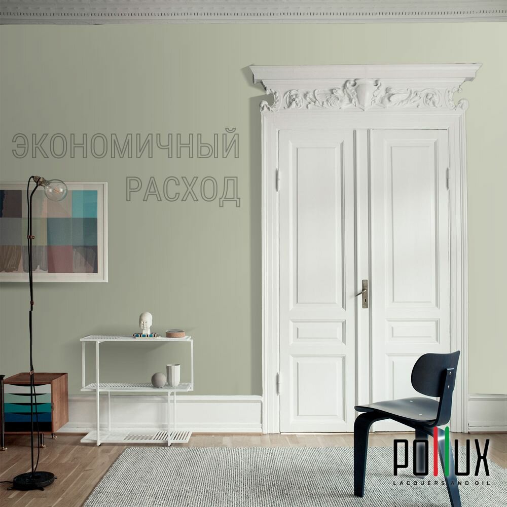 Краска моющаяся интерьерная для стен и потолков, Pollux INTERIOR без запаха, быстросохнущая, акриловая, матовое покрытие, цвет NCS S 7005-G50Y, 1л.