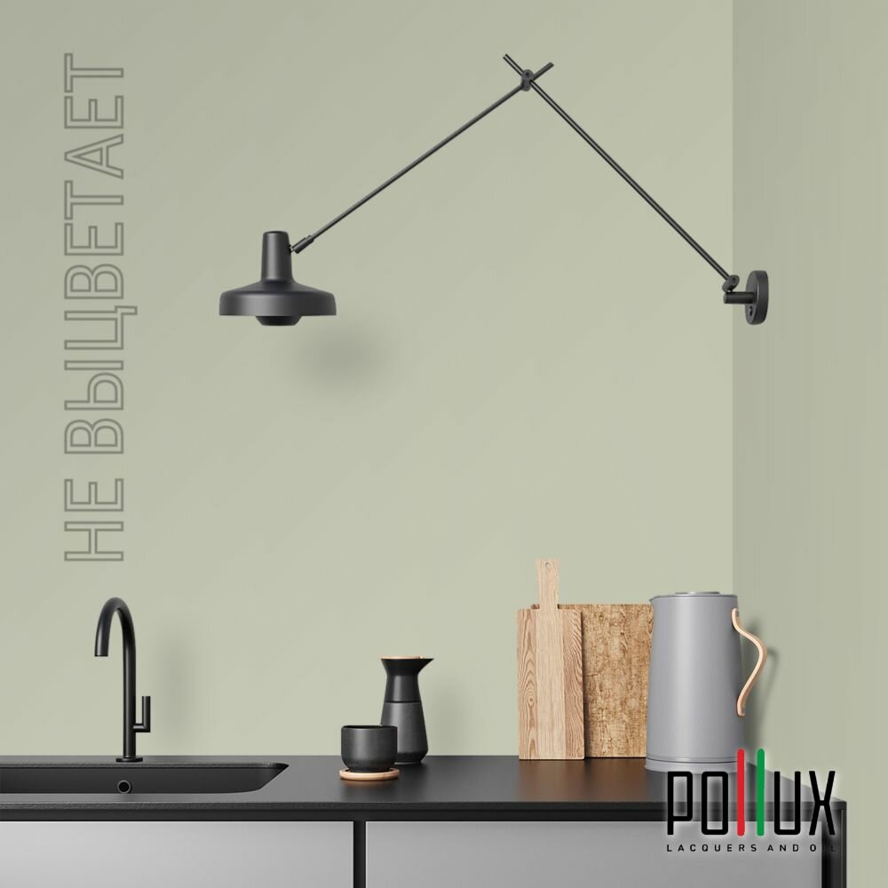 Краска моющаяся интерьерная для стен и потолков, Pollux INTERIOR без запаха, быстросохнущая, акриловая, матовое покрытие, цвет NCS S 5020-G50Y, 1л.
