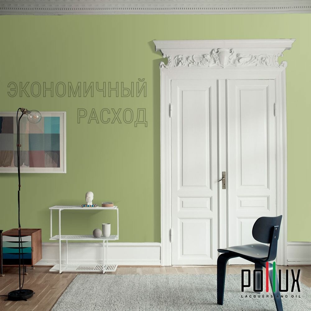 Краска моющаяся интерьерная для стен и потолков, Pollux INTERIOR без запаха, быстросохнущая, акриловая, матовое покрытие, цвет NCS S 5005-G50Y, 1л.