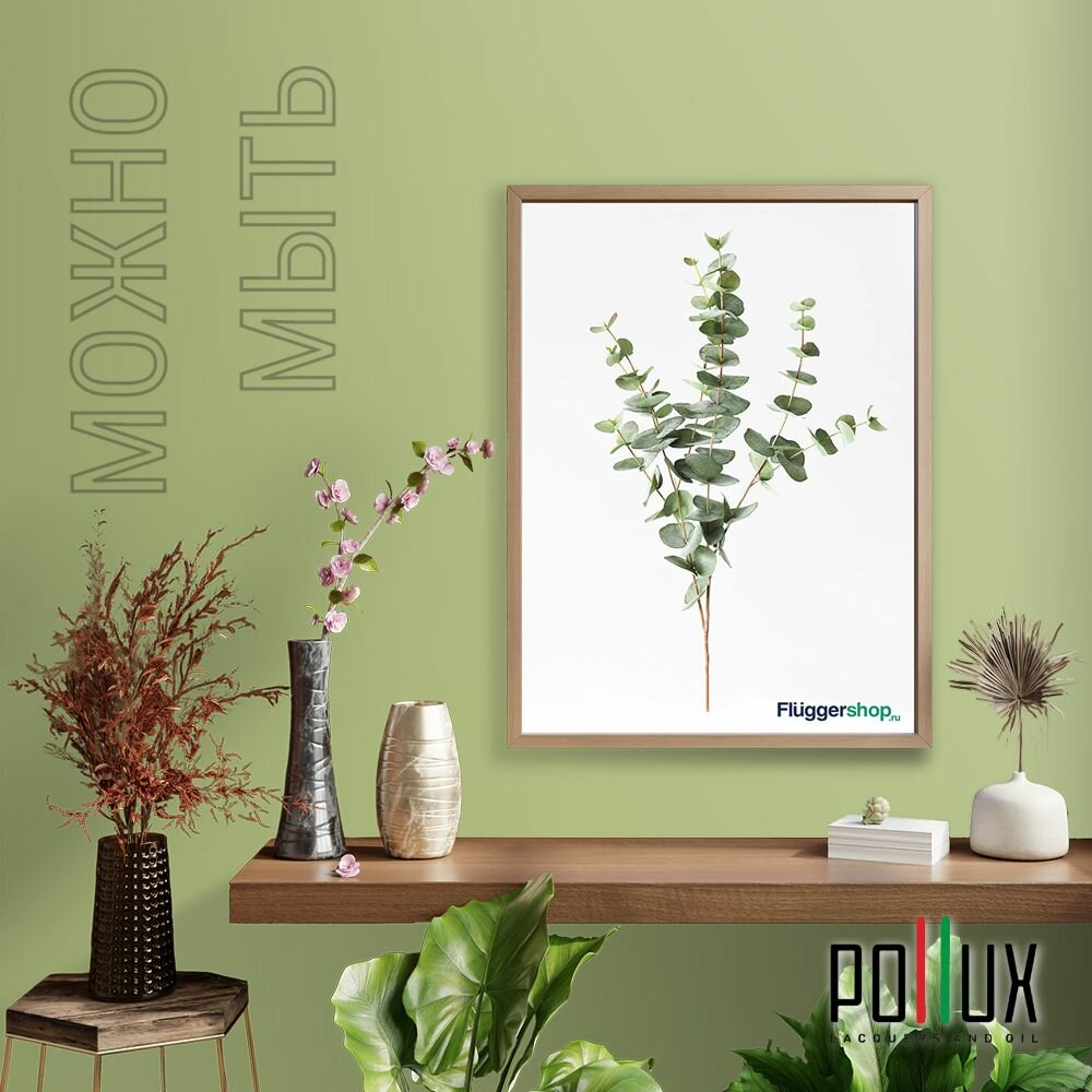 Краска моющаяся интерьерная для стен и потолков, Pollux INTERIOR без запаха, быстросохнущая, акриловая, матовое покрытие, цвет NCS S 5540-G50Y, 1л.