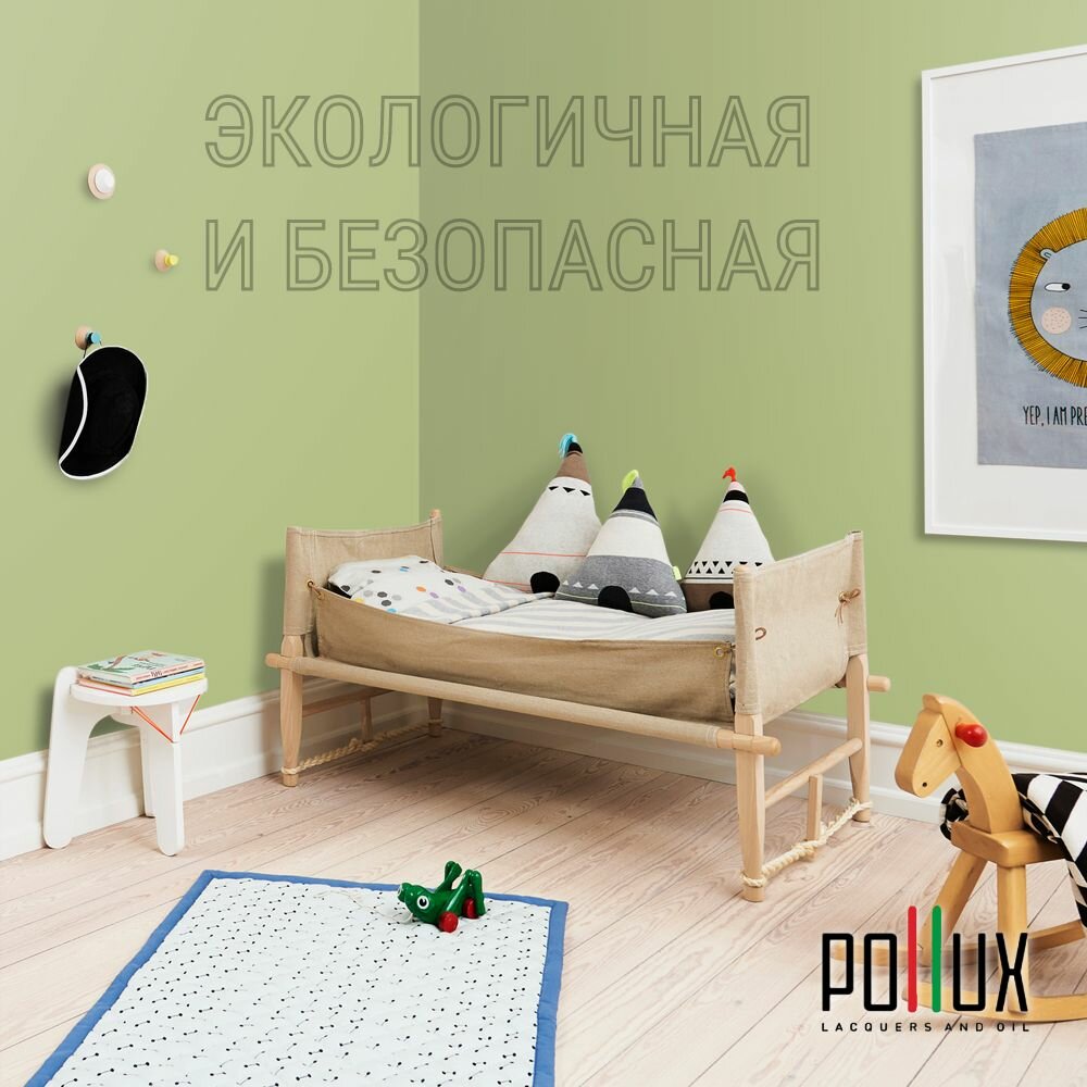 Краска моющаяся интерьерная для стен и потолков, Pollux INTERIOR без запаха, быстросохнущая, акриловая, матовое покрытие, цвет NCS S 4050-G50Y, 1л.