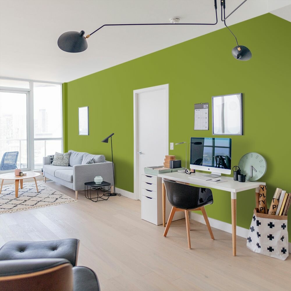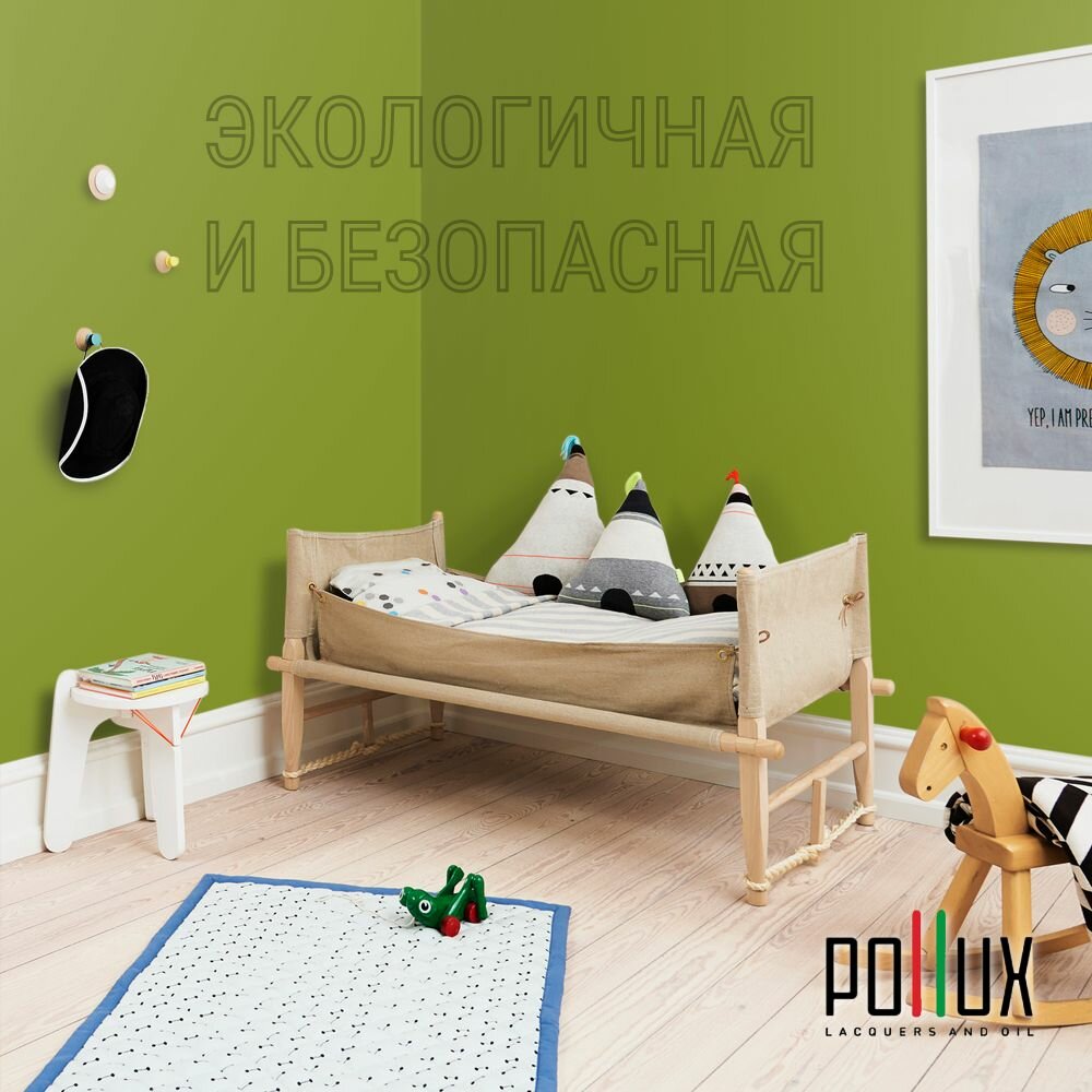 Краска моющаяся интерьерная для стен и потолков, Pollux INTERIOR без запаха, быстросохнущая, акриловая, матовое покрытие, цвет NCS S 6020-G50Y, 1л.