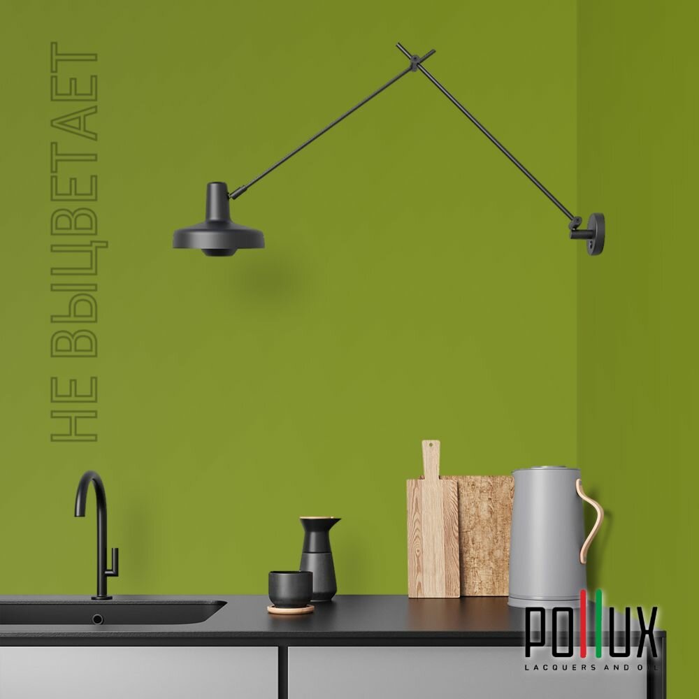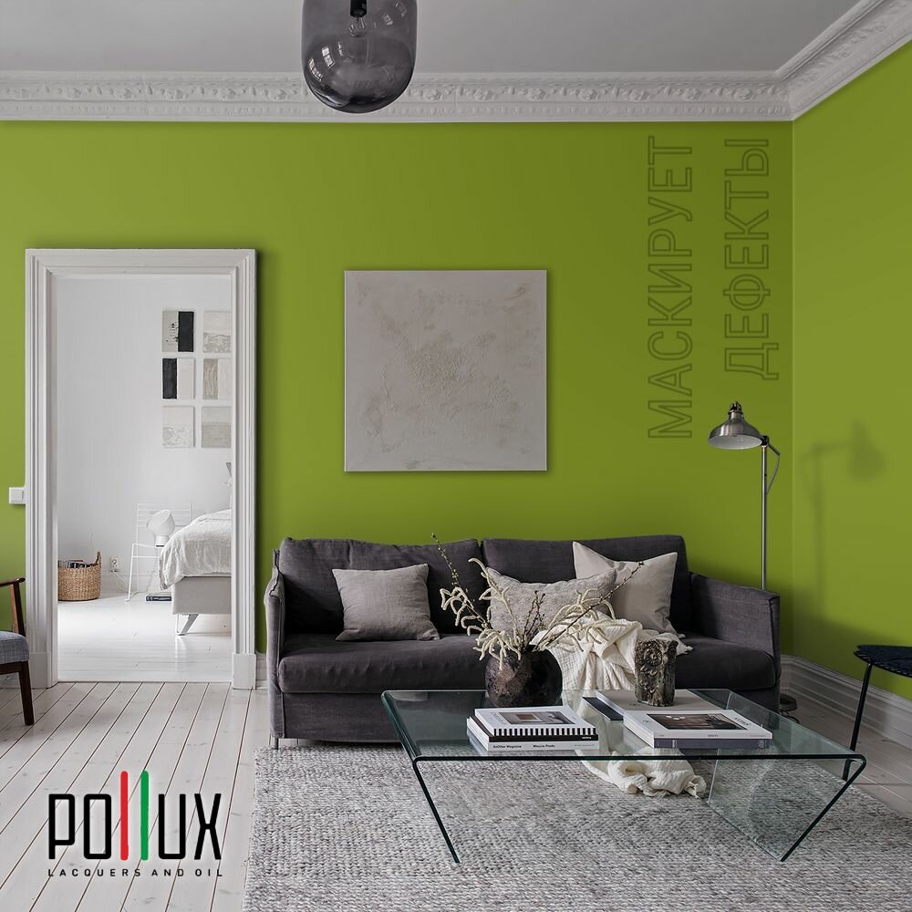 Краска моющаяся интерьерная для стен и потолков, Pollux INTERIOR без запаха, быстросохнущая, акриловая, матовое покрытие, цвет NCS S 8010-G50Y, 1л.