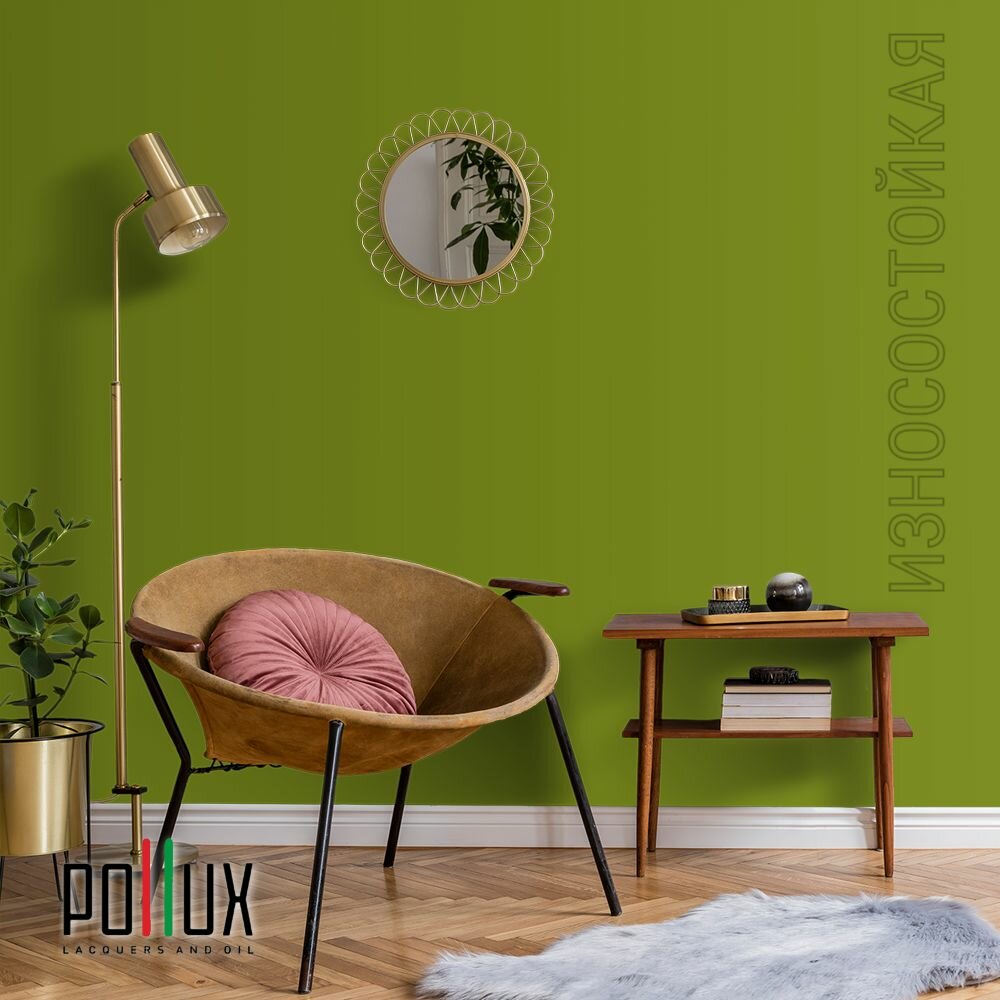 Краска моющаяся интерьерная для стен и потолков, Pollux INTERIOR без запаха, быстросохнущая, акриловая, матовое покрытие, цвет NCS S 6010-G50Y, 1л.