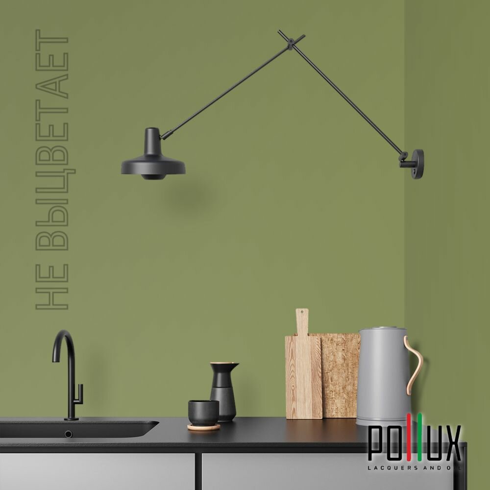 Краска моющаяся интерьерная для стен и потолков, Pollux INTERIOR без запаха, быстросохнущая, акриловая, матовое покрытие, цвет NCS S 6530-G50Y, 1л.
