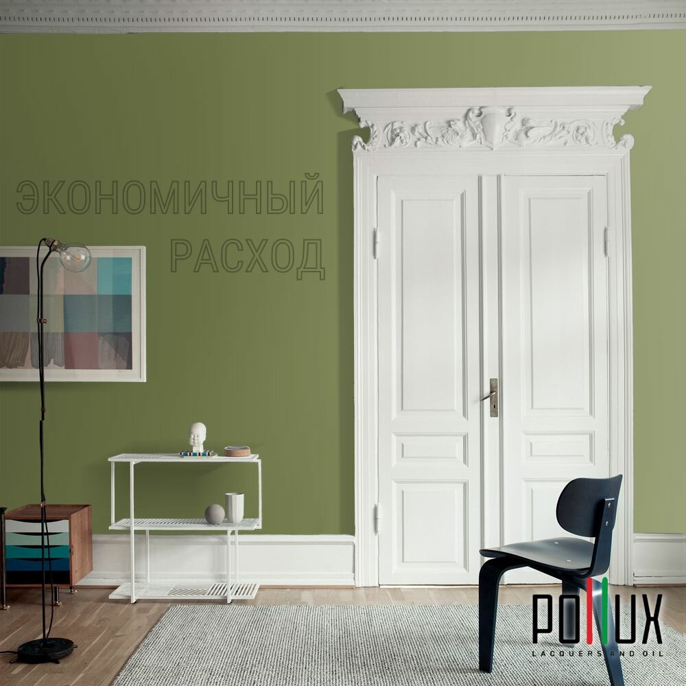 Краска моющаяся интерьерная для стен и потолков, Pollux INTERIOR без запаха, быстросохнущая, акриловая, матовое покрытие, цвет NCS S 5005-G50Y, 1л.