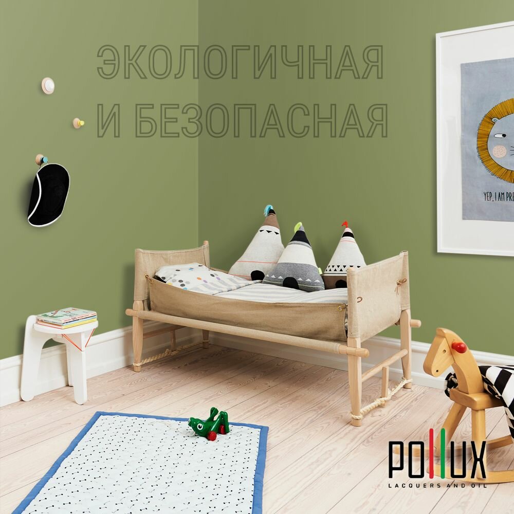 Краска моющаяся интерьерная для стен и потолков, Pollux INTERIOR без запаха, быстросохнущая, акриловая, матовое покрытие, цвет NCS S 4050-G50Y, 1л.