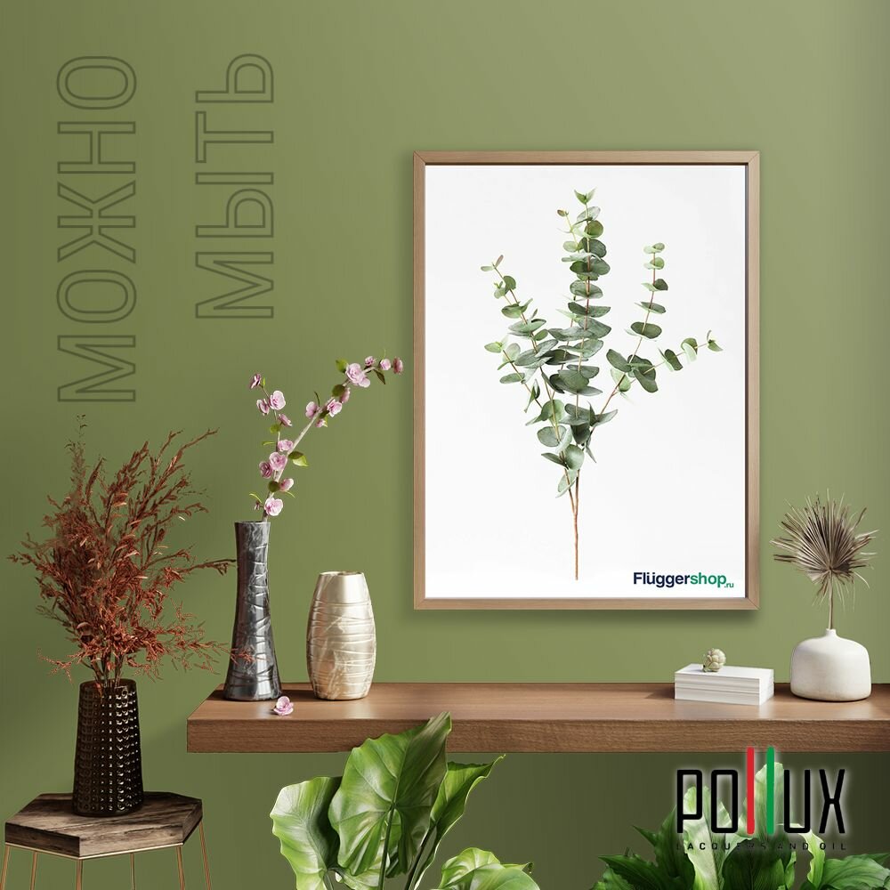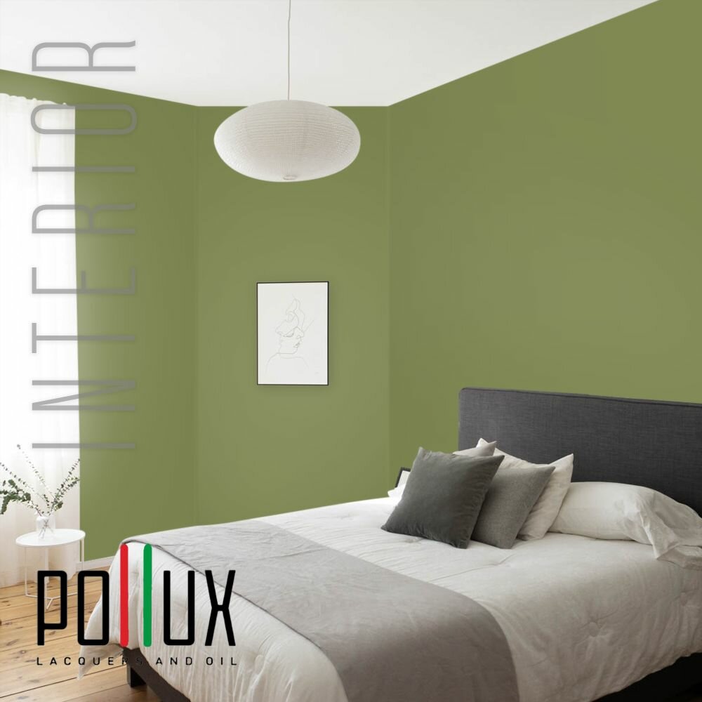 Краска моющаяся интерьерная для стен и потолков, Pollux INTERIOR без запаха, быстросохнущая, акриловая, матовое покрытие, цвет NCS S 8005-G50Y, 1л.