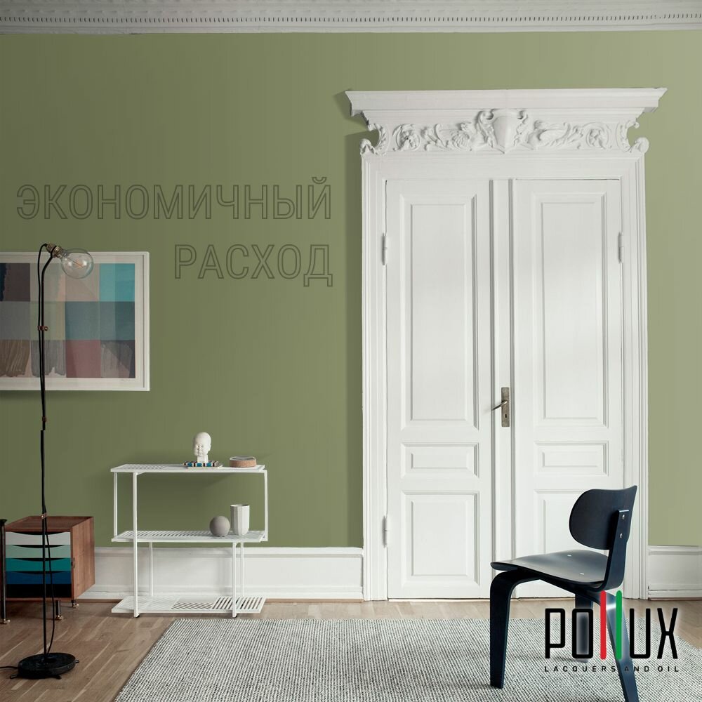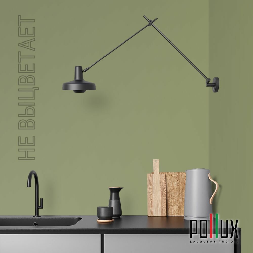 Краска моющаяся интерьерная для стен и потолков, Pollux INTERIOR без запаха, быстросохнущая, акриловая, матовое покрытие, цвет NCS S 6530-G50Y, 1л.
