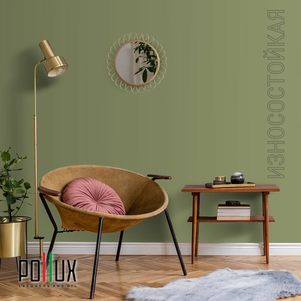 Краска моющаяся интерьерная для стен и потолков, Pollux INTERIOR без запаха, быстросохнущая, акриловая, матовое покрытие, цвет NCS S 6005-G50Y, 1л.