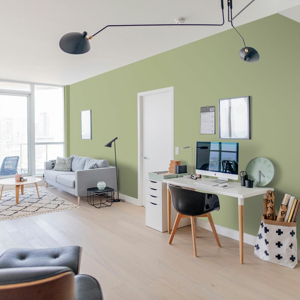 Краска моющаяся интерьерная для стен и потолков, Pollux INTERIOR без запаха, быстросохнущая, акриловая, матовое покрытие, цвет NCS S 6020-G50Y, 1л.