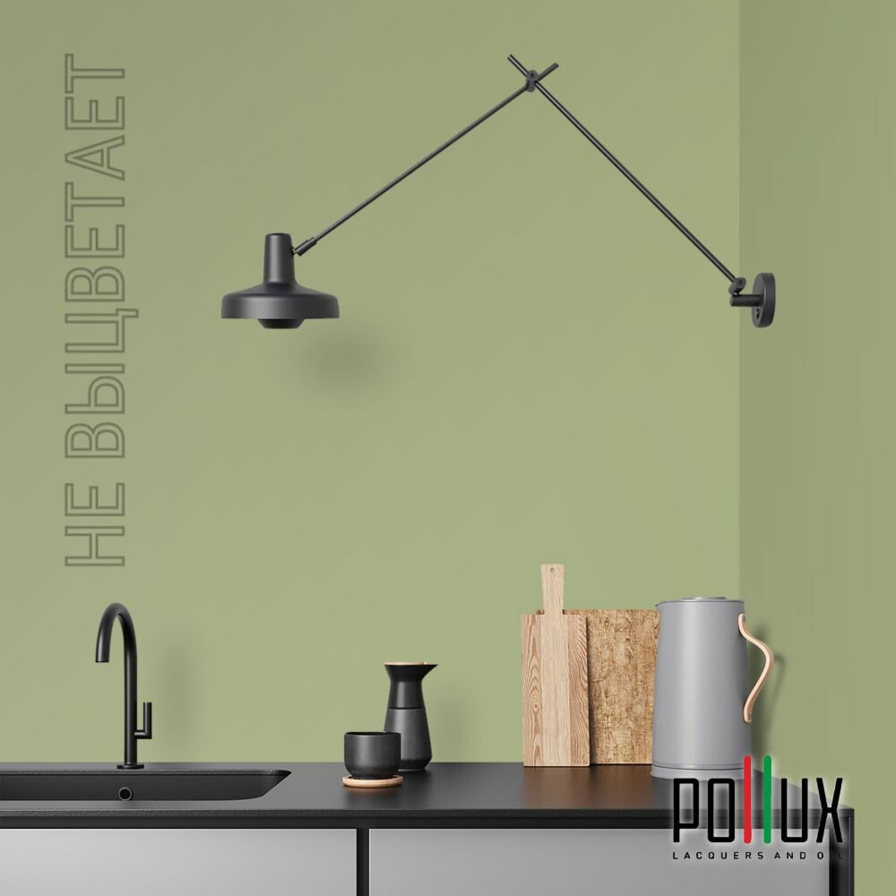 Краска моющаяся интерьерная для стен и потолков, Pollux INTERIOR без запаха, быстросохнущая, акриловая, матовое покрытие, цвет NCS S 6530-G50Y, 1л.