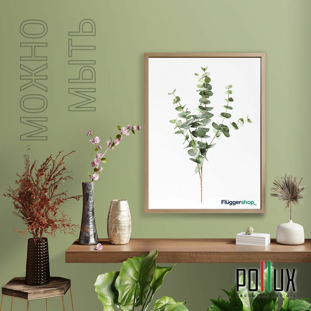 Краска моющаяся интерьерная для стен и потолков, Pollux INTERIOR без запаха, быстросохнущая, акриловая, матовое покрытие, цвет NCS S 5540-G50Y, 1л.