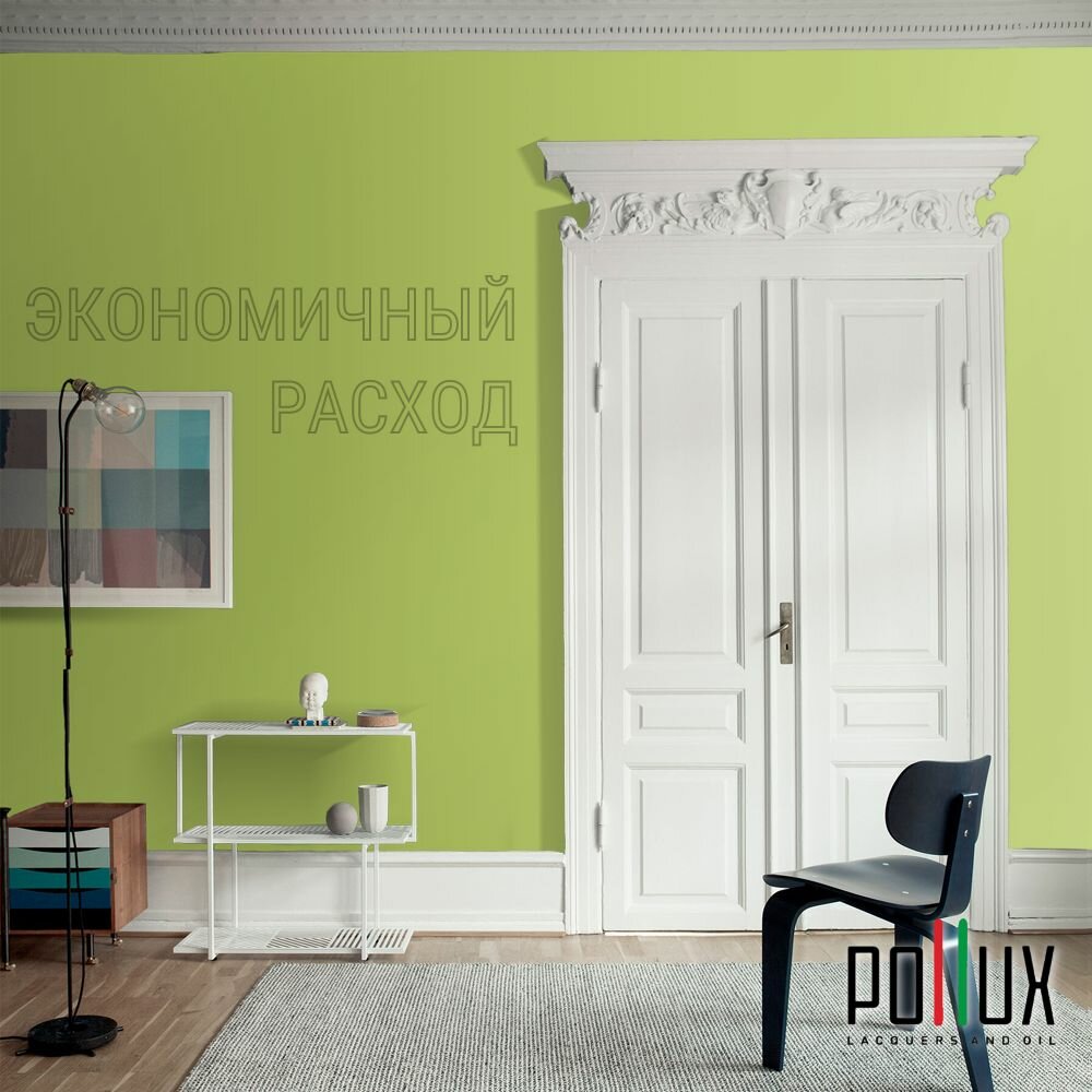 Краска моющаяся интерьерная для стен и потолков, Pollux INTERIOR без запаха, быстросохнущая, акриловая, матовое покрытие, цвет NCS S 6530-G50Y, 1л.