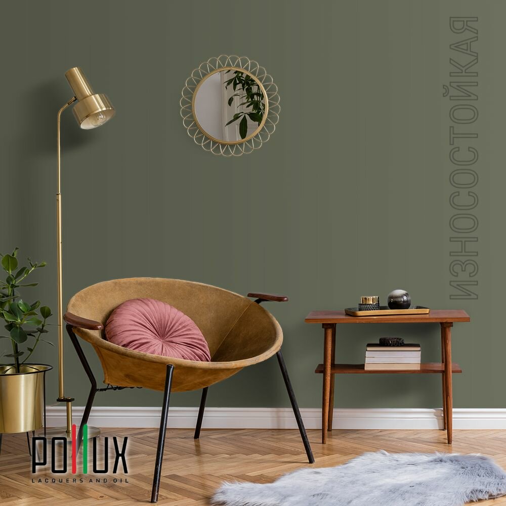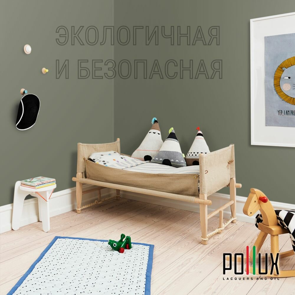Краска моющаяся интерьерная для стен и потолков, Pollux INTERIOR без запаха, быстросохнущая, акриловая, матовое покрытие, цвет NCS S 8010-G50Y, 1л.