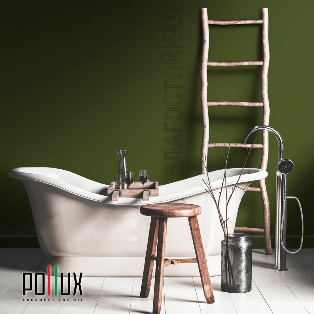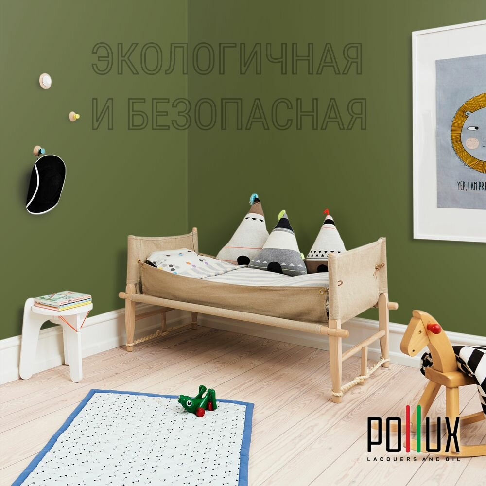 Краска моющаяся интерьерная для стен и потолков, Pollux INTERIOR без запаха, быстросохнущая, акриловая, матовое покрытие, цвет NCS S 8010-G50Y, 1л.