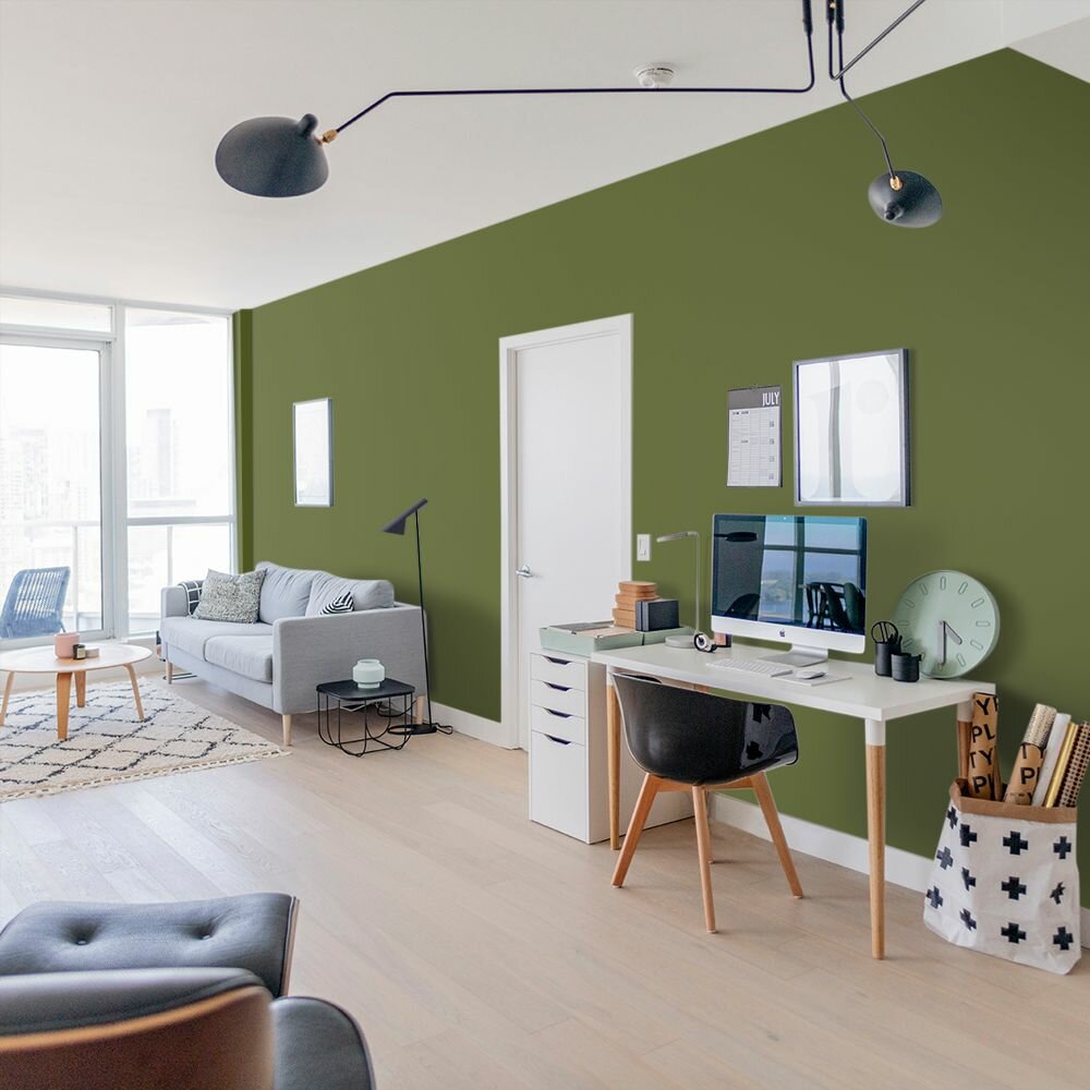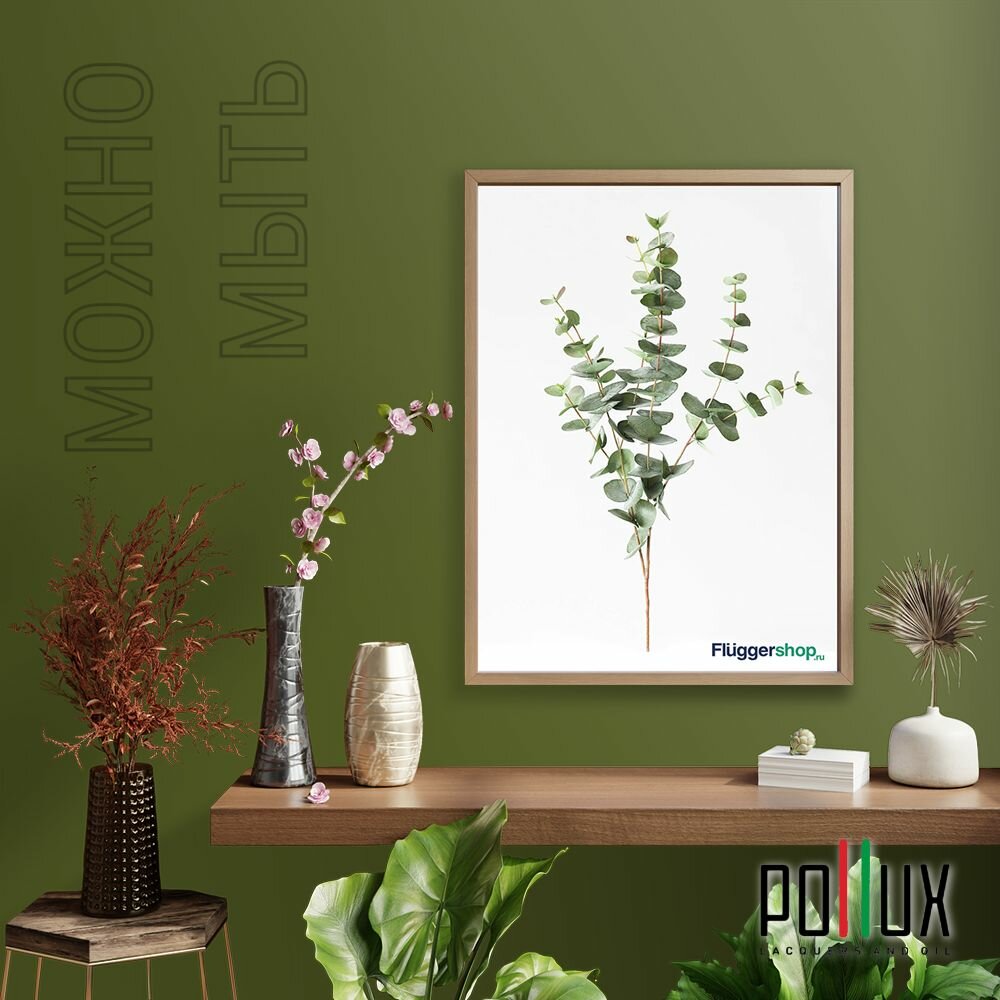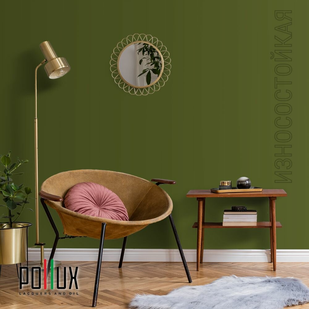 Краска моющаяся интерьерная для стен и потолков, Pollux INTERIOR без запаха, быстросохнущая, акриловая, матовое покрытие, цвет NCS S 6005-G50Y, 1л.