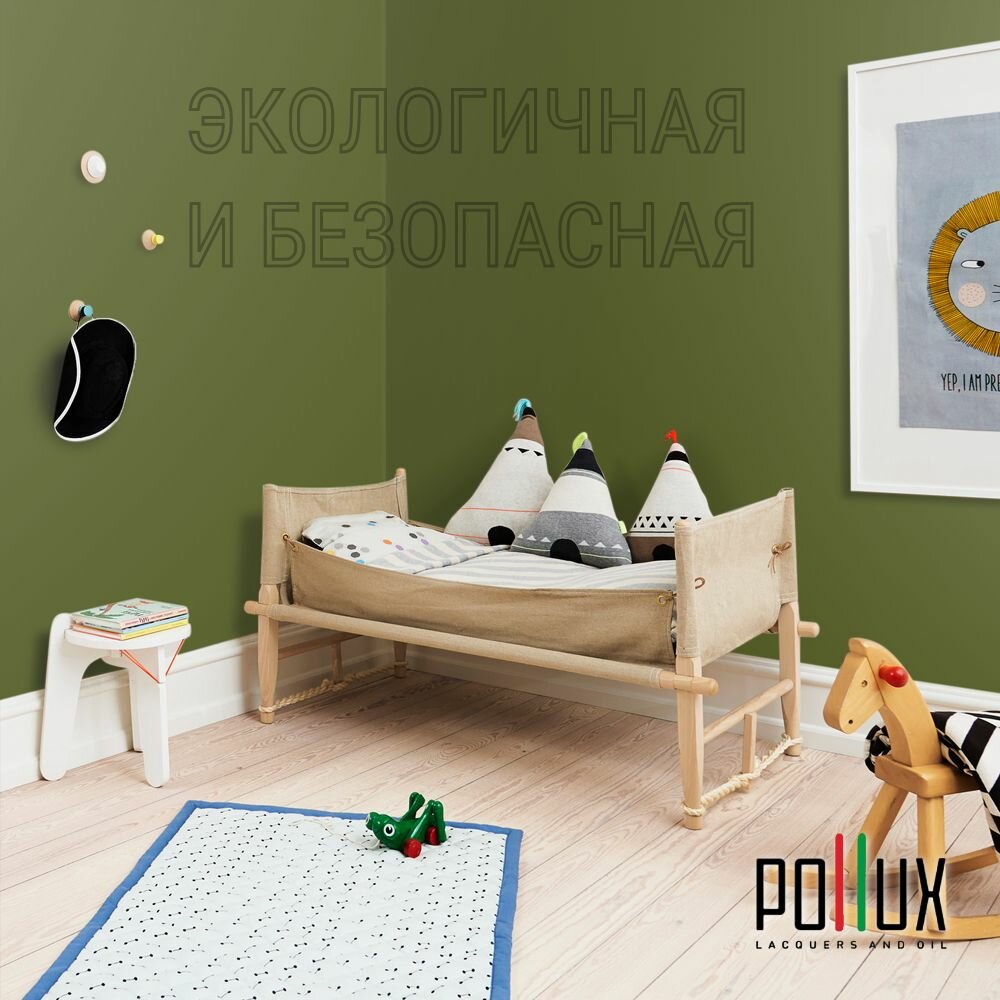 Краска моющаяся интерьерная для стен и потолков, Pollux INTERIOR без запаха, быстросохнущая, акриловая, матовое покрытие, цвет NCS S 4050-G50Y, 1л.