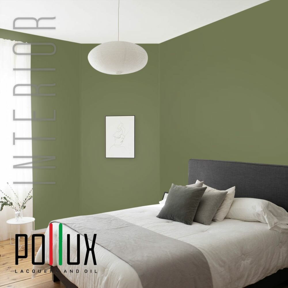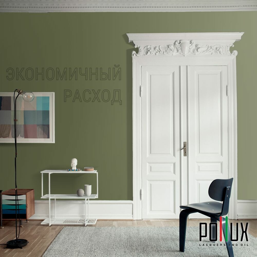 Краска моющаяся интерьерная для стен и потолков, Pollux INTERIOR без запаха, быстросохнущая, акриловая, матовое покрытие, цвет NCS S 5005-G50Y, 1л.