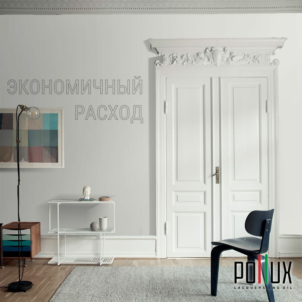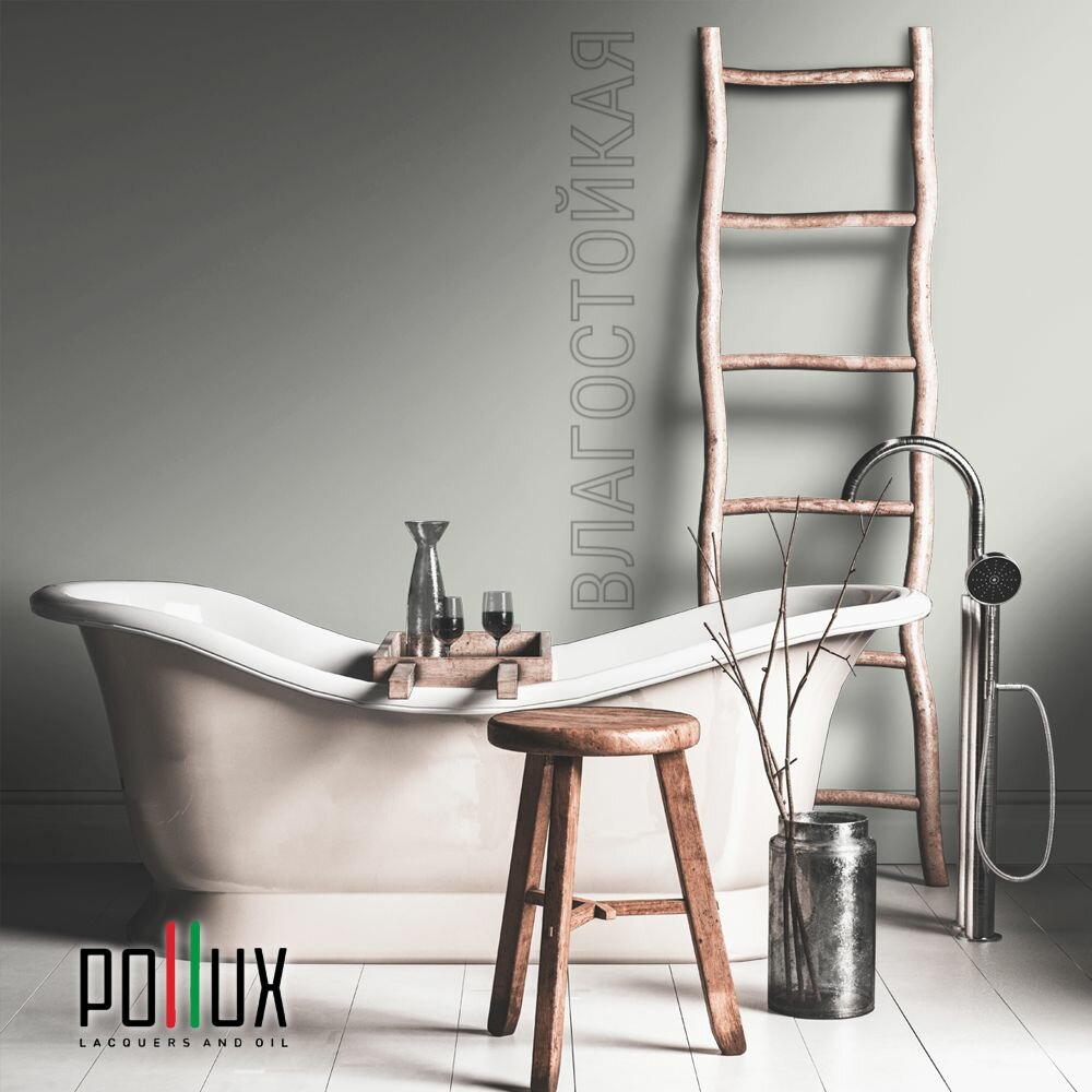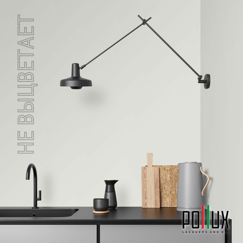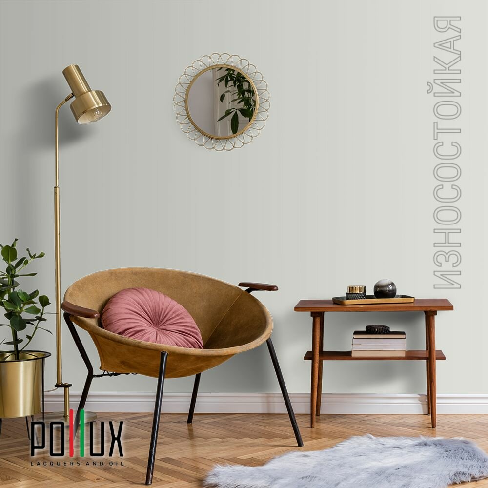 Краска моющаяся интерьерная для стен и потолков, Pollux INTERIOR без запаха, быстросохнущая, акриловая, матовое покрытие, цвет NCS S 7010-G50Y, 1л.