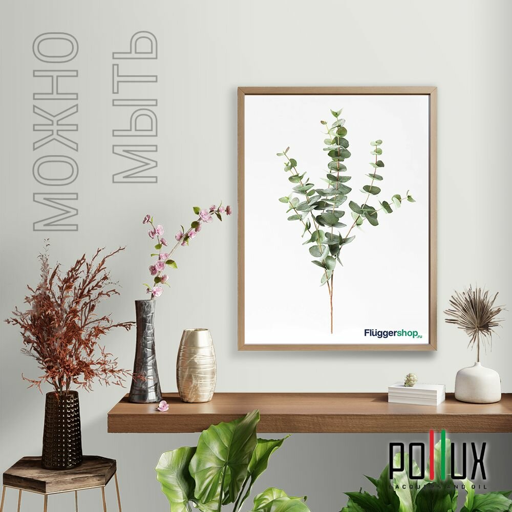 Краска моющаяся интерьерная для стен и потолков, Pollux INTERIOR без запаха, быстросохнущая, акриловая, матовое покрытие, цвет NCS S 7005-G50Y, 1л.