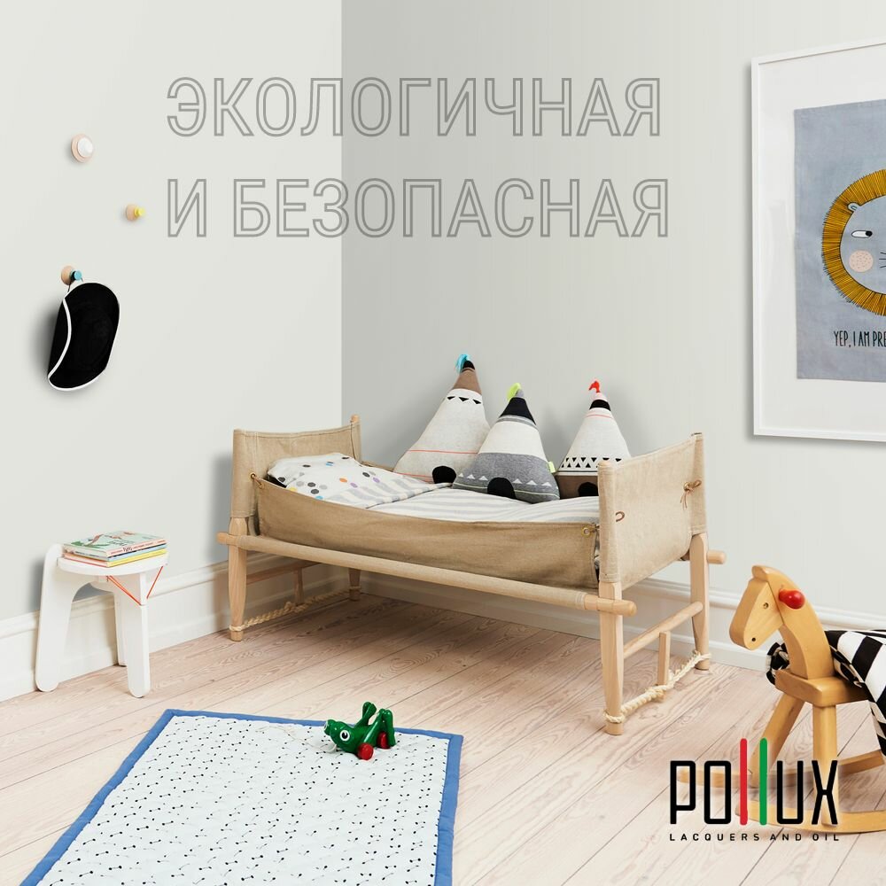 Краска моющаяся интерьерная для стен и потолков, Pollux INTERIOR без запаха, быстросохнущая, акриловая, матовое покрытие, цвет NCS S 1502-G50Y, 1л.