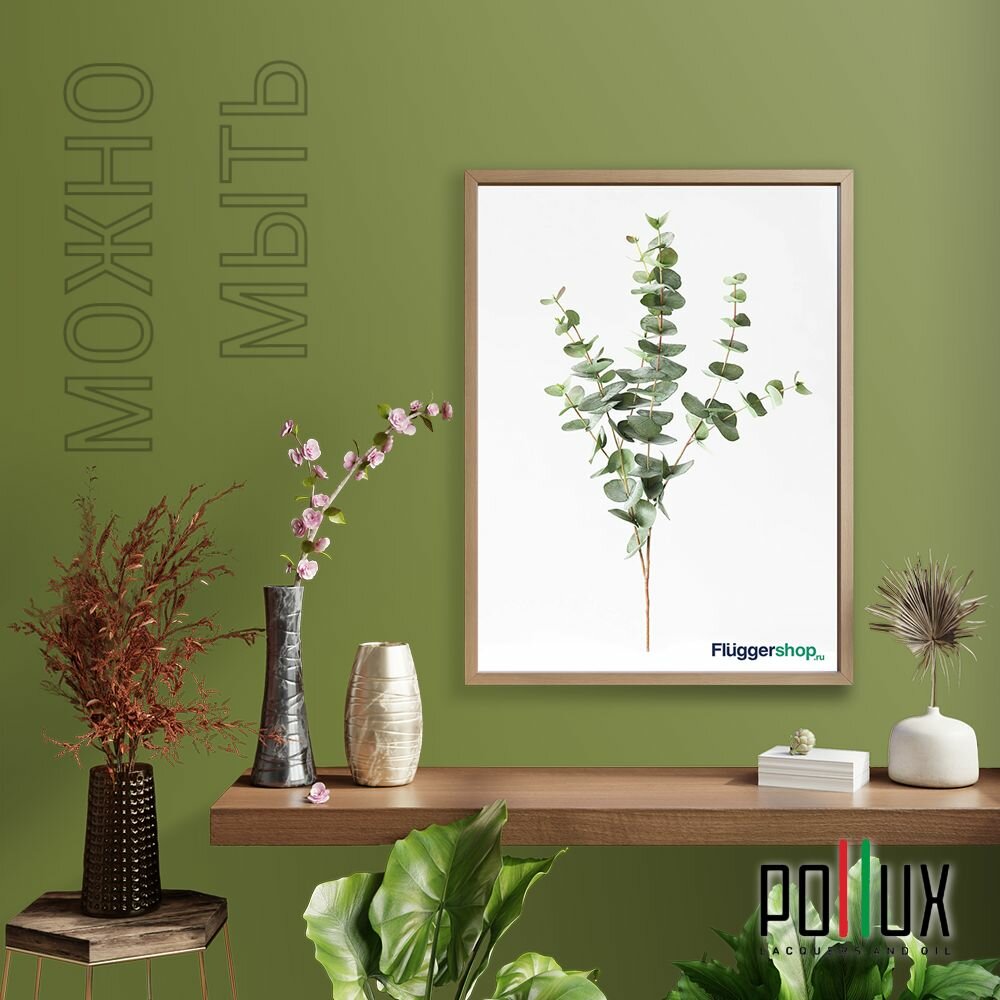 Краска моющаяся интерьерная для стен и потолков, Pollux INTERIOR без запаха, быстросохнущая, акриловая, матовое покрытие, цвет NCS S 8005-G50Y, 1л.