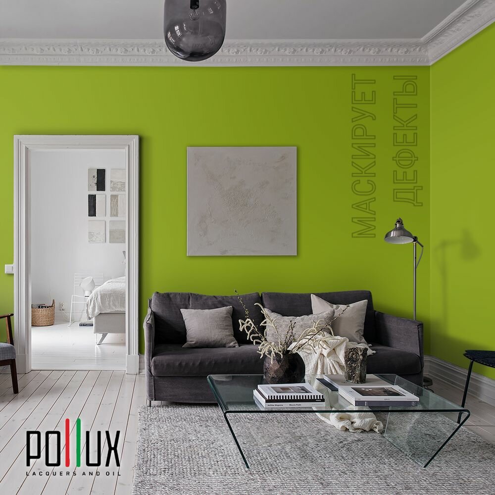 Краска моющаяся интерьерная для стен и потолков, Pollux INTERIOR без запаха, быстросохнущая, акриловая, матовое покрытие, цвет NCS S 6010-G50Y, 1л.