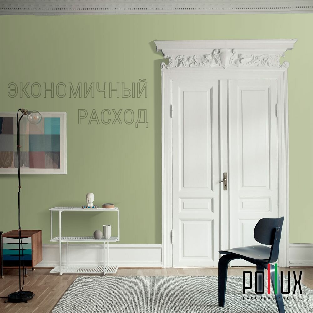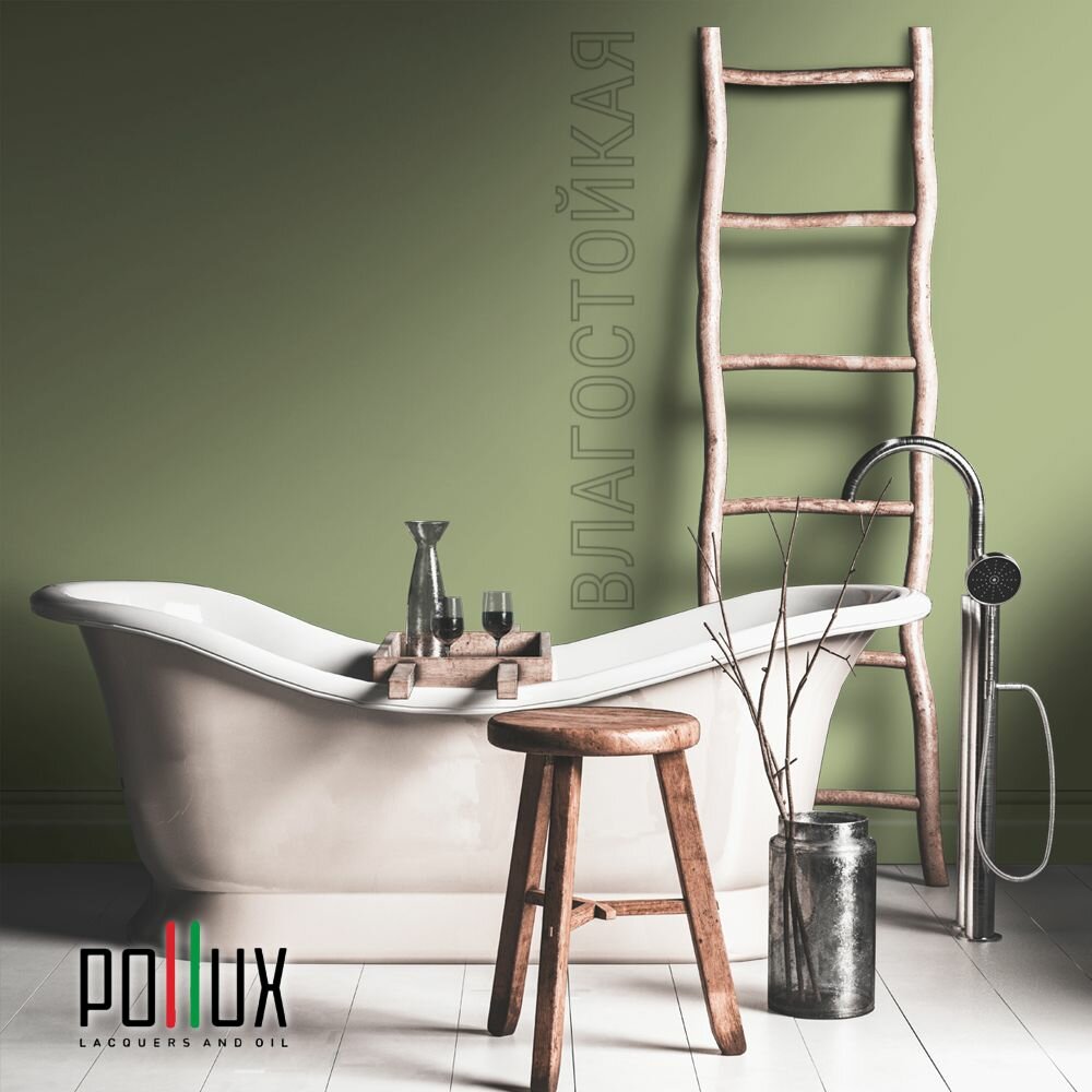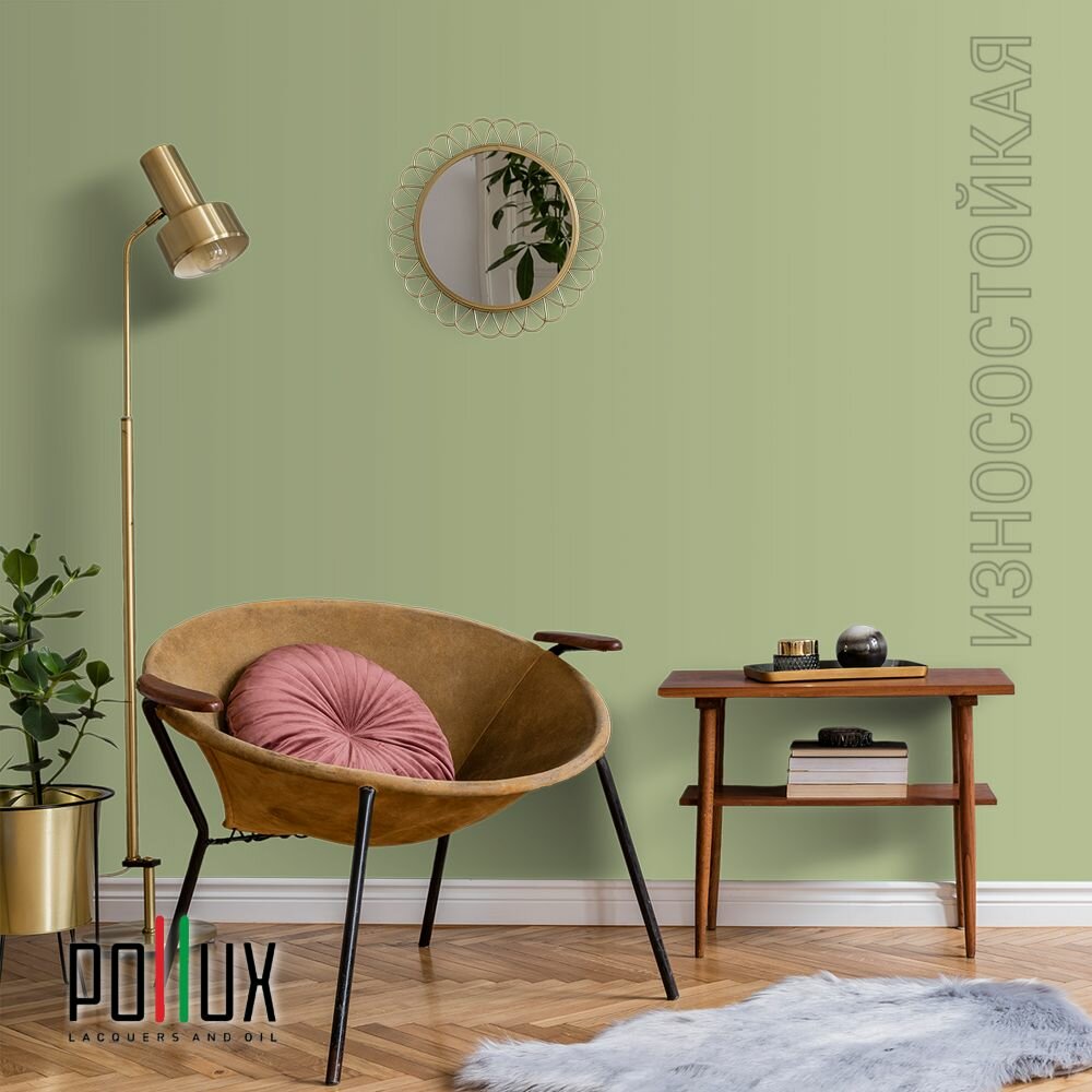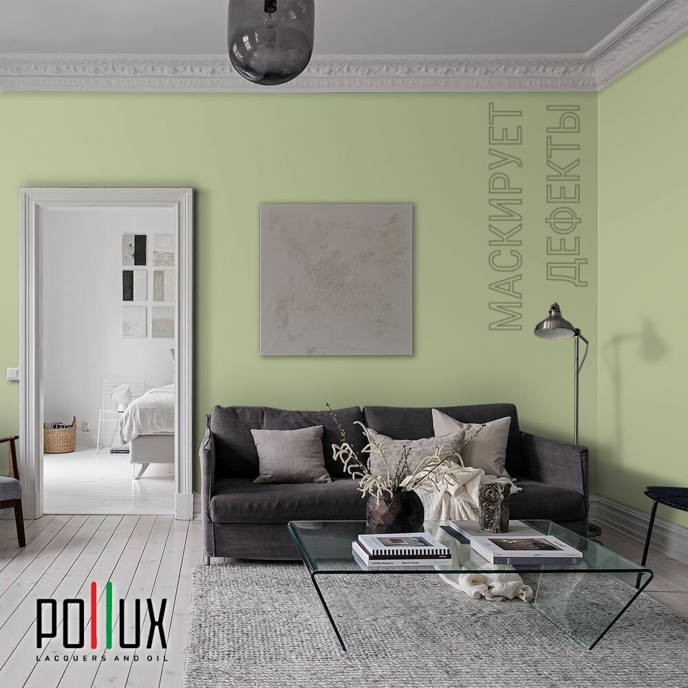 Краска моющаяся интерьерная для стен и потолков, Pollux INTERIOR без запаха, быстросохнущая, акриловая, матовое покрытие, цвет NCS S 6530-G50Y, 1л.