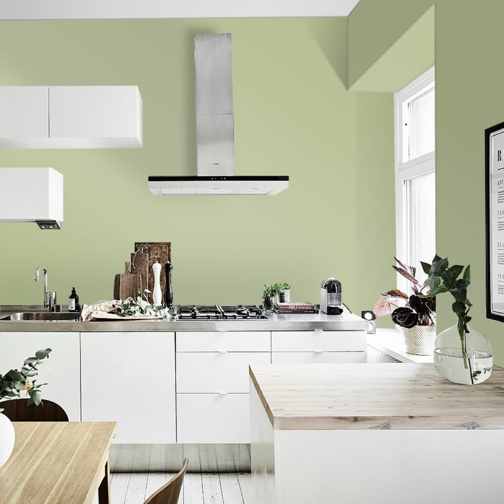 Краска моющаяся интерьерная для стен и потолков, Pollux INTERIOR без запаха, быстросохнущая, акриловая, матовое покрытие, цвет NCS S 6020-G50Y, 1л.