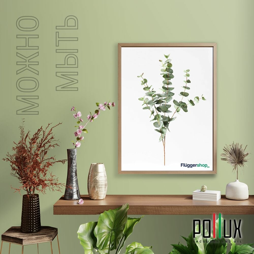 Краска моющаяся интерьерная для стен и потолков, Pollux INTERIOR без запаха, быстросохнущая, акриловая, матовое покрытие, цвет NCS S 5540-G50Y, 1л.