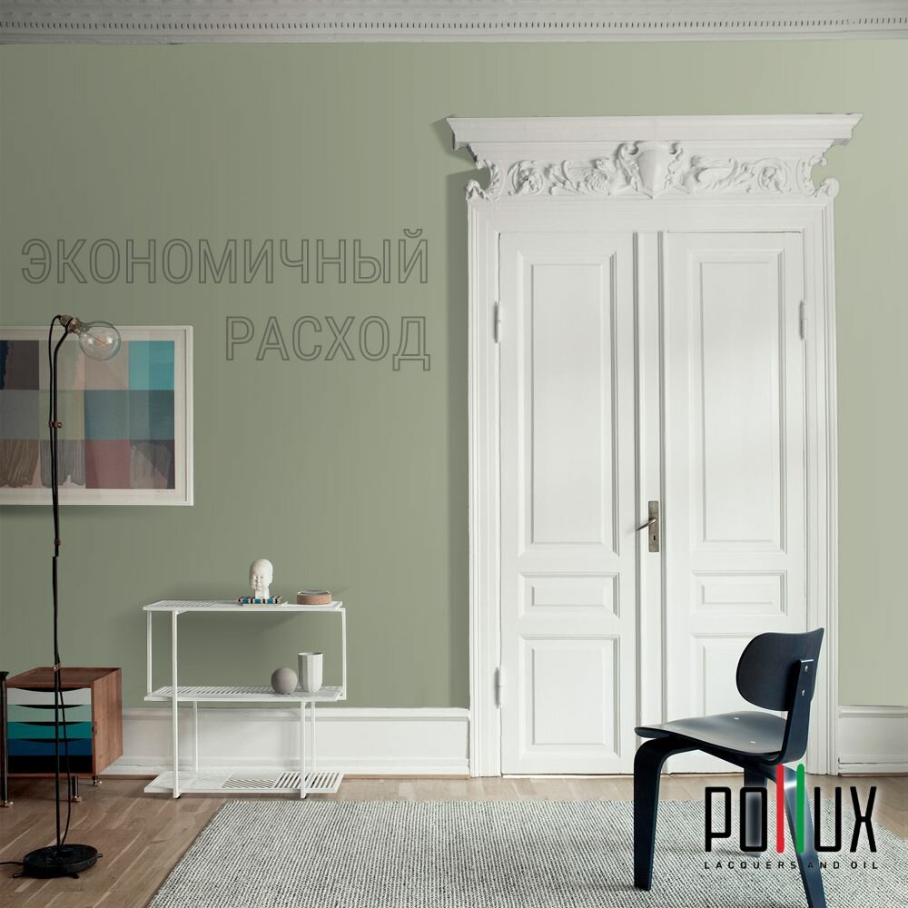 Краска моющаяся интерьерная для стен и потолков, Pollux INTERIOR без запаха, быстросохнущая, акриловая, матовое покрытие, цвет NCS S 5005-G50Y, 1л.