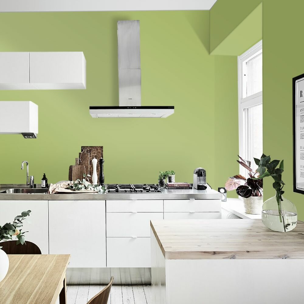 Краска моющаяся интерьерная для стен и потолков, Pollux INTERIOR без запаха, быстросохнущая, акриловая, матовое покрытие, цвет NCS S 6020-G50Y, 1л.