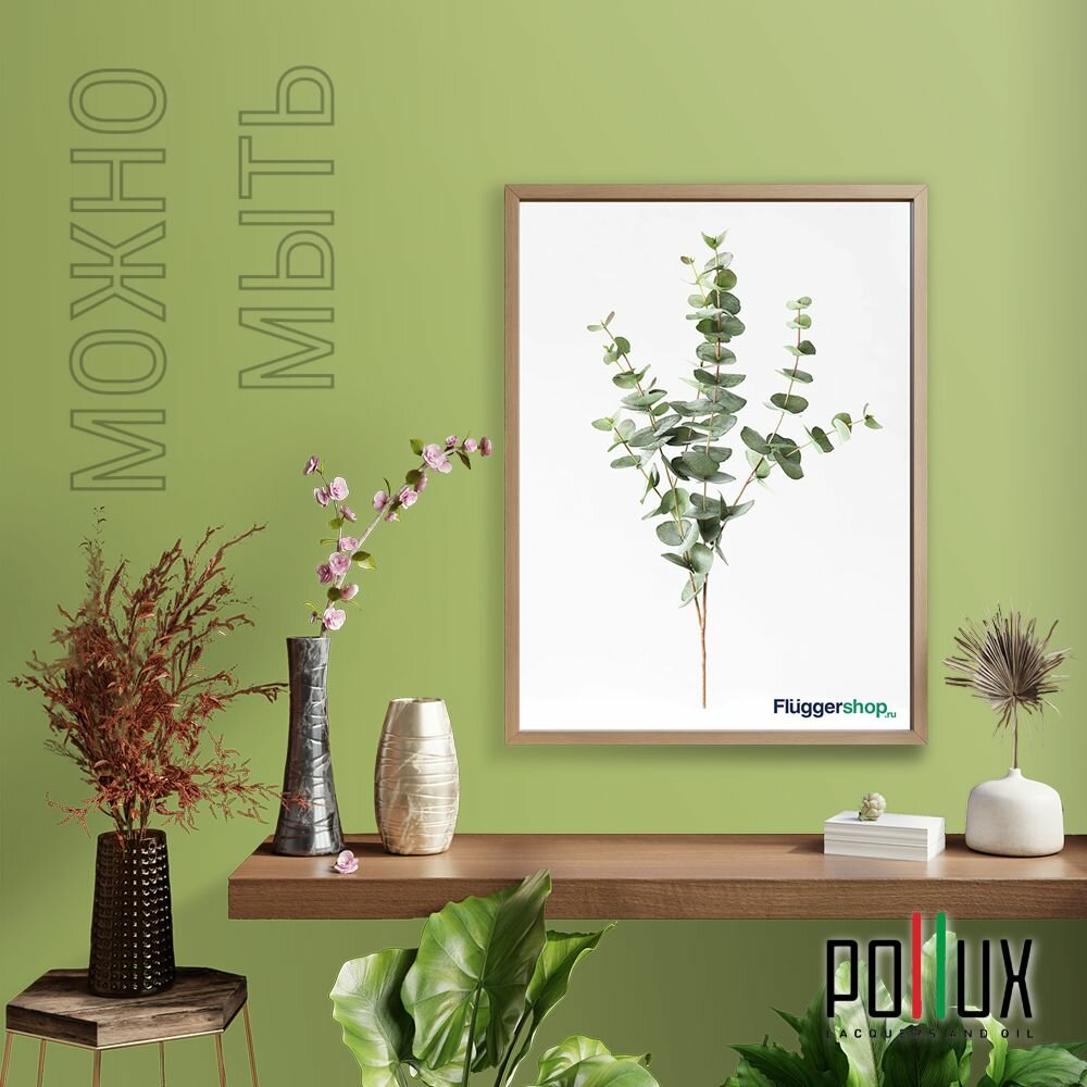 Краска моющаяся интерьерная для стен и потолков, Pollux INTERIOR без запаха, быстросохнущая, акриловая, матовое покрытие, цвет NCS S 8005-G50Y, 1л.