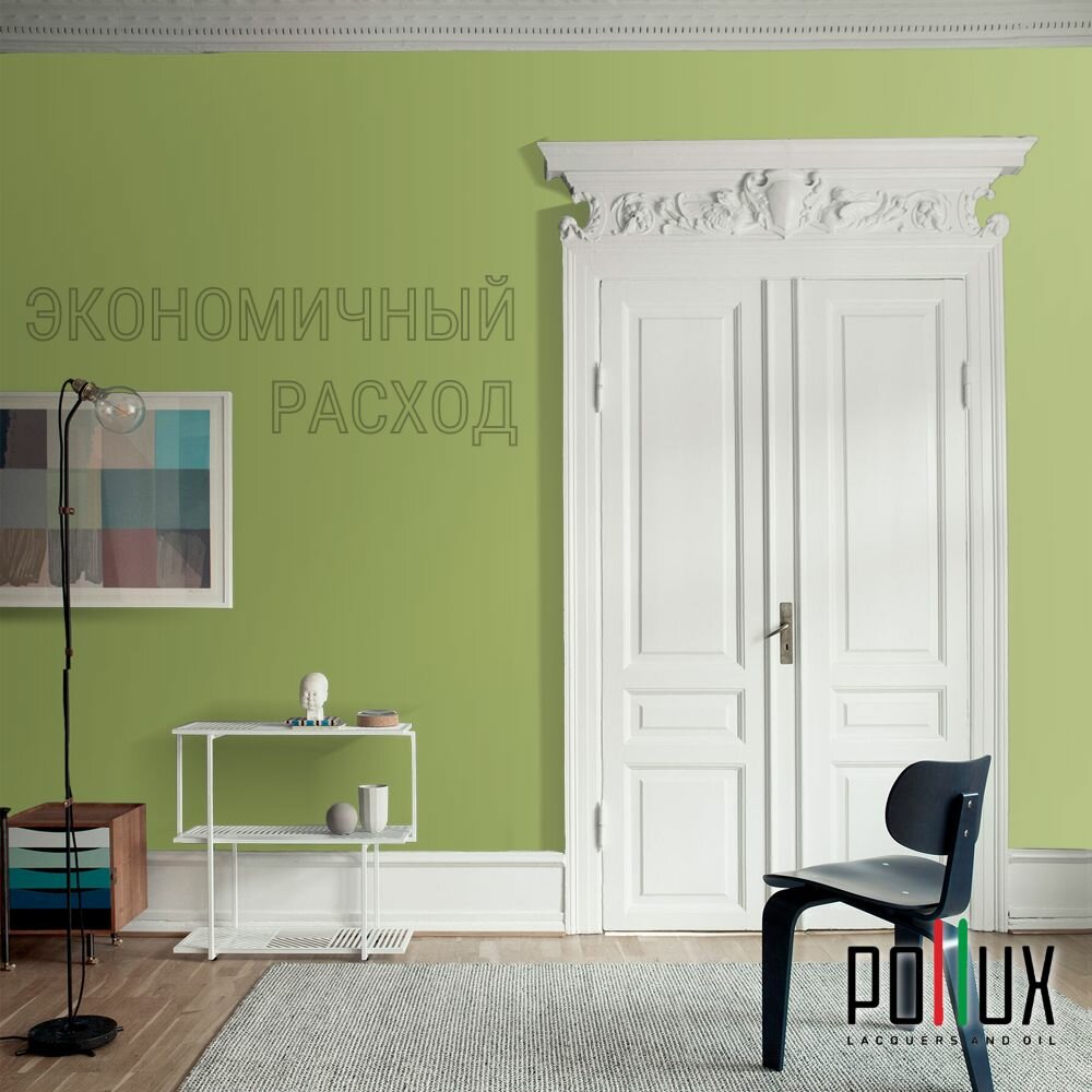 Краска моющаяся интерьерная для стен и потолков, Pollux INTERIOR без запаха, быстросохнущая, акриловая, матовое покрытие, цвет NCS S 6530-G50Y, 1л.
