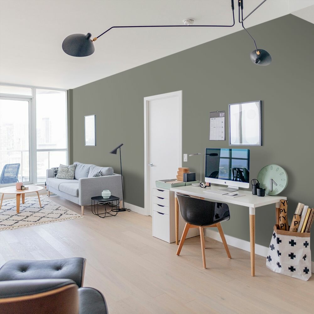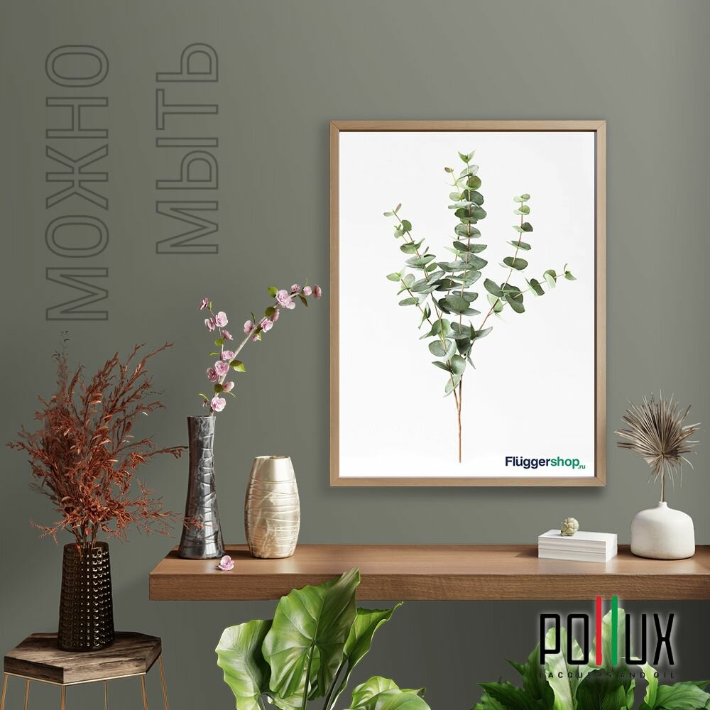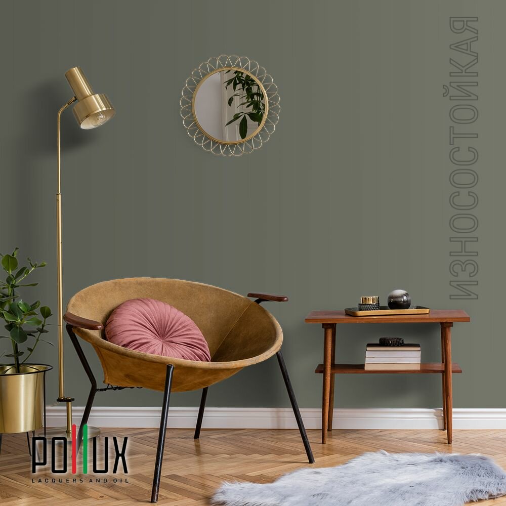 Краска моющаяся интерьерная для стен и потолков, Pollux INTERIOR без запаха, быстросохнущая, акриловая, матовое покрытие, цвет NCS S 8010-G50Y, 1л.