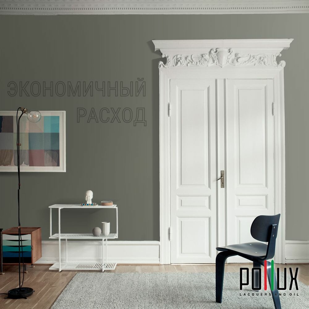 Краска моющаяся интерьерная для стен и потолков, Pollux INTERIOR без запаха, быстросохнущая, акриловая, матовое покрытие, цвет NCS S 7010-G50Y, 1л.